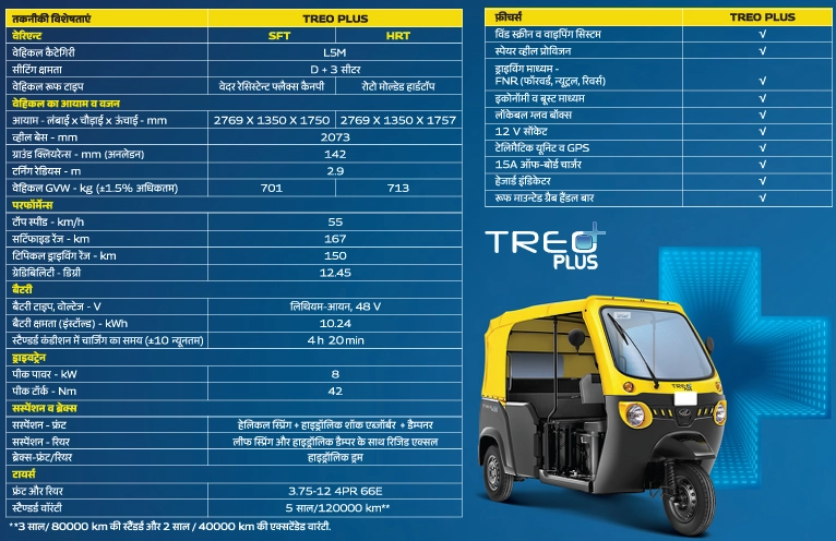 Treo Plus मेटल बॉडी की शुरुआती कीमत 3.58 लाख रुपये (एक्स-शोरूम) है. इसकी मज़बूत मेटल बॉडी इसे और भी टिकाऊ बनाती है, जिससे यह यात्रियों और सामान दोनों के परिवहन के लिए एक विश्वसनीय साधन बन जाता है. 2018 से, Mahindra इलेक्ट्रिक थ्री-व्हीलर सेगमेंट में अग्रणी रही है और Treo सीरीज को ग्राहकों का भरपूर प्यार मिला है.