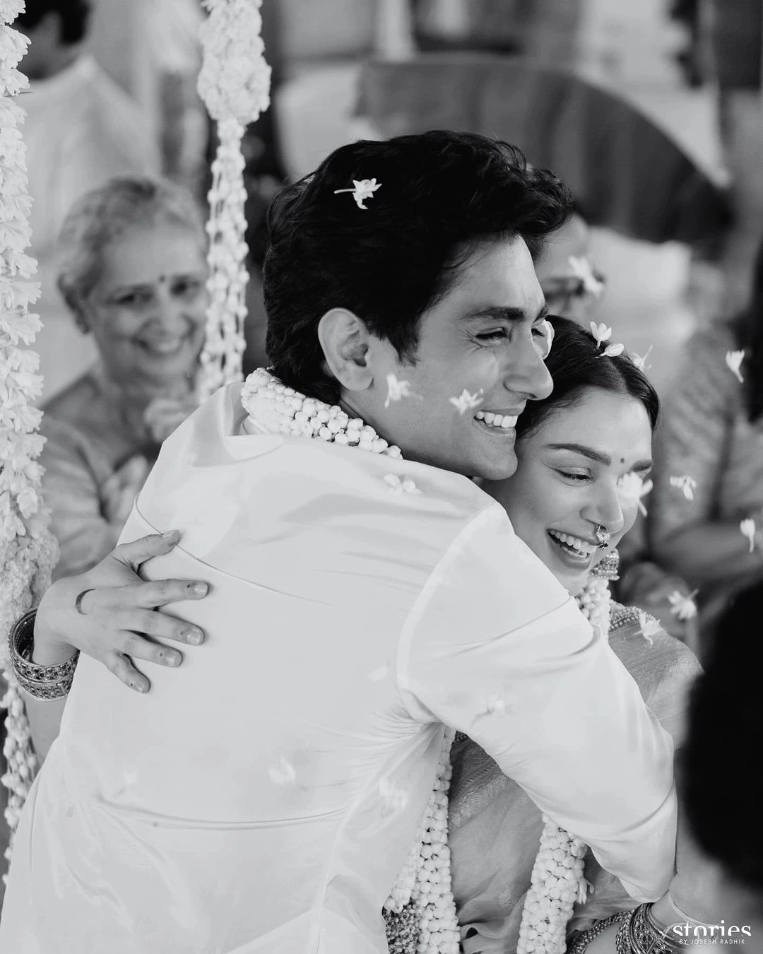 दूल्हे सिद्धार्थ ने एक साधारण कुर्ता पहना, जिस पर हल्की कढ़ाई थी, और इसे परंपरागत वेस्टी के साथ स्टाइल किया. अदिति ने अपनी शादी की तस्वीरें एक खूबसूरत कैप्शन के साथ साझा की: "तुम मेरे सूरज हो, मेरे चांद हो, और मेरी सारी सितारे हो... हमेशा के लिए पिक्सी सोलमेट्स बनने के लिए, हंसी के लिए, कभी बड़े न होने के लिए... शाश्वत प्यार, प्रकाश और जादू के लिए. मिसेज और मिस्टर अदू-सिद्धू (सिक)."