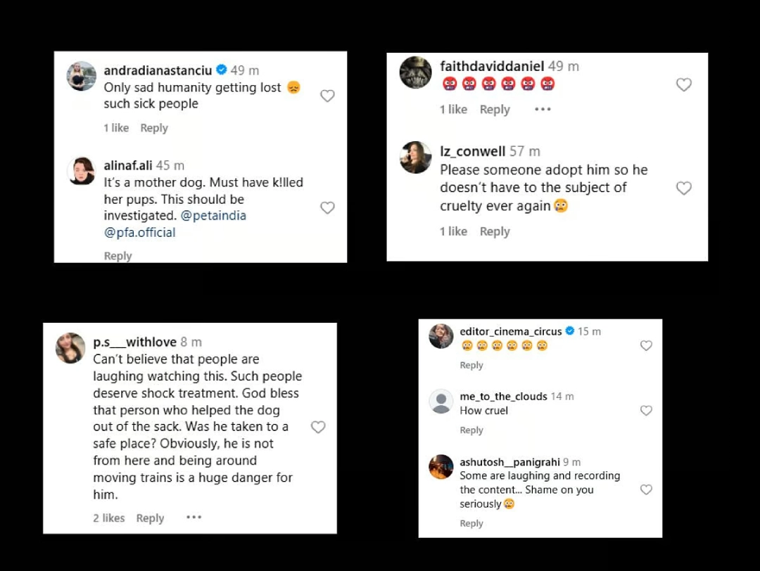 इंस्टाग्राम पेज 'Street Dogs of Bombay' ने इस घटना का वीडियो पोस्ट करते हुए लिखा, "एक निर्दोष, असहाय कुत्ते को जूट की बोरी में ठूंसकर कोलकाता की लोकल ट्रेन में फेंक दिया गया. अगर ट्रेन में मौजूद एक यात्री ने समय रहते बोरी में हलचल न देखी होती और इसे खोलने का निर्णय न लिया होता, तो यह मासूम जान गवा सकता था."