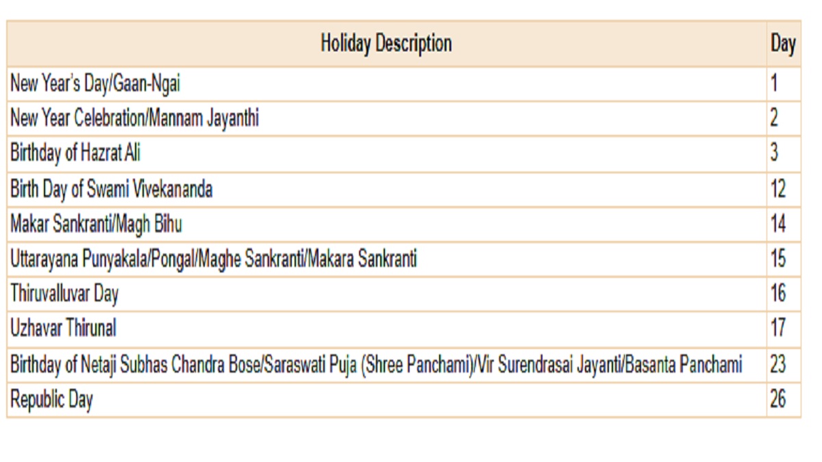 जनवरी 2026 बैंक छुट्टियों की सूची