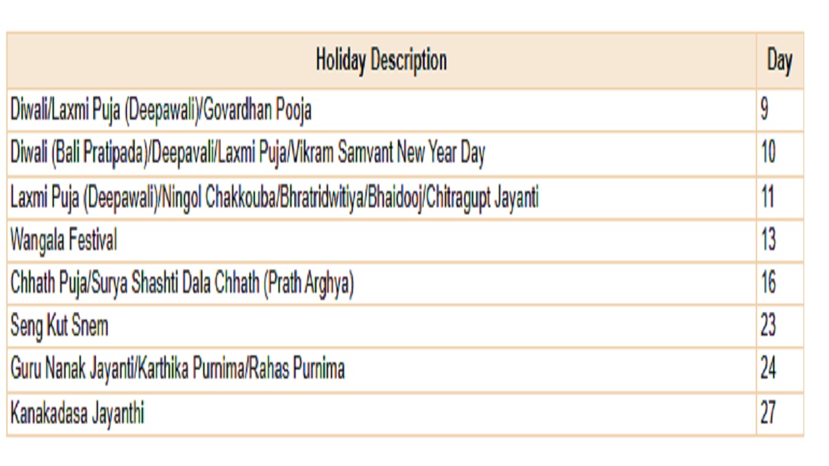 नवंबर 2026 बैंक छुट्टियों की सूची