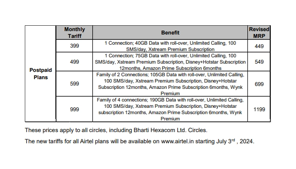 भारत की दूसरी सबसे बड़ी टेलीकॉम कंपनी भारती एयरटेल (Airtel) ने भी अपने मोबाइल टैरिफ (Recharge Plan) में बढ़ोतरी कर दी है. जियो के बाद एयरटेल ने ये फैसला लिया है. कंपनी ने बताया है कि 3 जुलाई 2024 से मोबाइल टैरिफ में 10-21% तक की वृद्धि होगी. लेकिन, एयरटेल ने कहा है कि सबसे सस्ते प्लान में दिन भर में 70 पैसे से कम की ही बढ़ोतरी होगी.