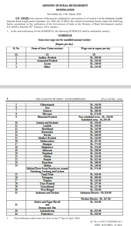 आगामी चुनावों से पहले केंद्र सरकार ने मनरेगा योजना के मजदूरों के लिए एक अहम फैसला किया है. सरकार ने वित्तीय वर्ष 2024-25 के लिए इन मजदूरों की दिहाड़ी में 3 से 10 फीसदी तक की बढ़ोतरी का ऐलान किया है. यह बढ़ोतरी पिछले वित्तीय वर्ष में की गई बढ़ोतरी के समान ही है. नई दरें 1 अप्रैल 2024 से लागू होंगीं. इसकी अधिसूचना आज जारी कर दी गई है.