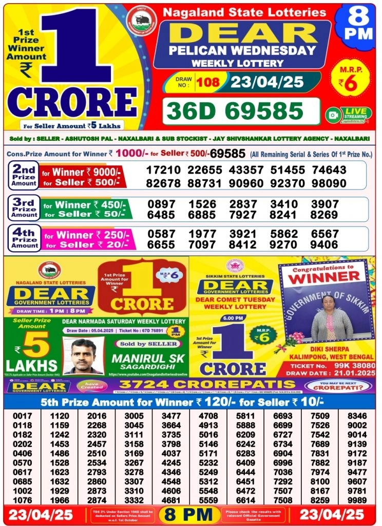 Nagaland Dear Lottery Sambad Result Today 8 PM