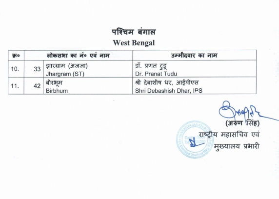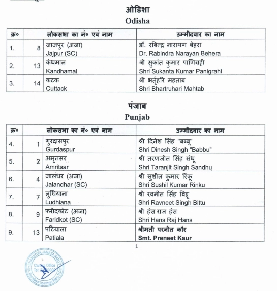 BJP releases the 8th list of the Lok Sabha Candidates from Odisha, Punjab and West Bengal.