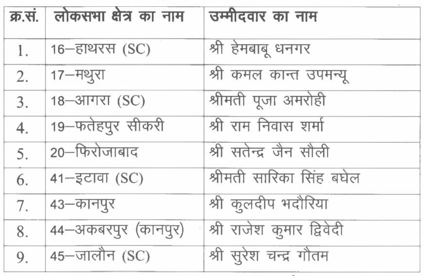 लोकसभा चुनाव के लिए बहुजन समाज पार्टी की ओर से पहली और दूसरी लिस्ट आज जारी की गई. पहले लिस्ट में 16 और दूसरी लिस्ट में 9 उम्मीदवारों का ऐलान किया गया है.