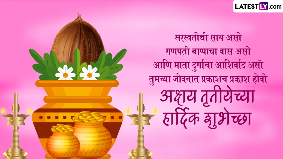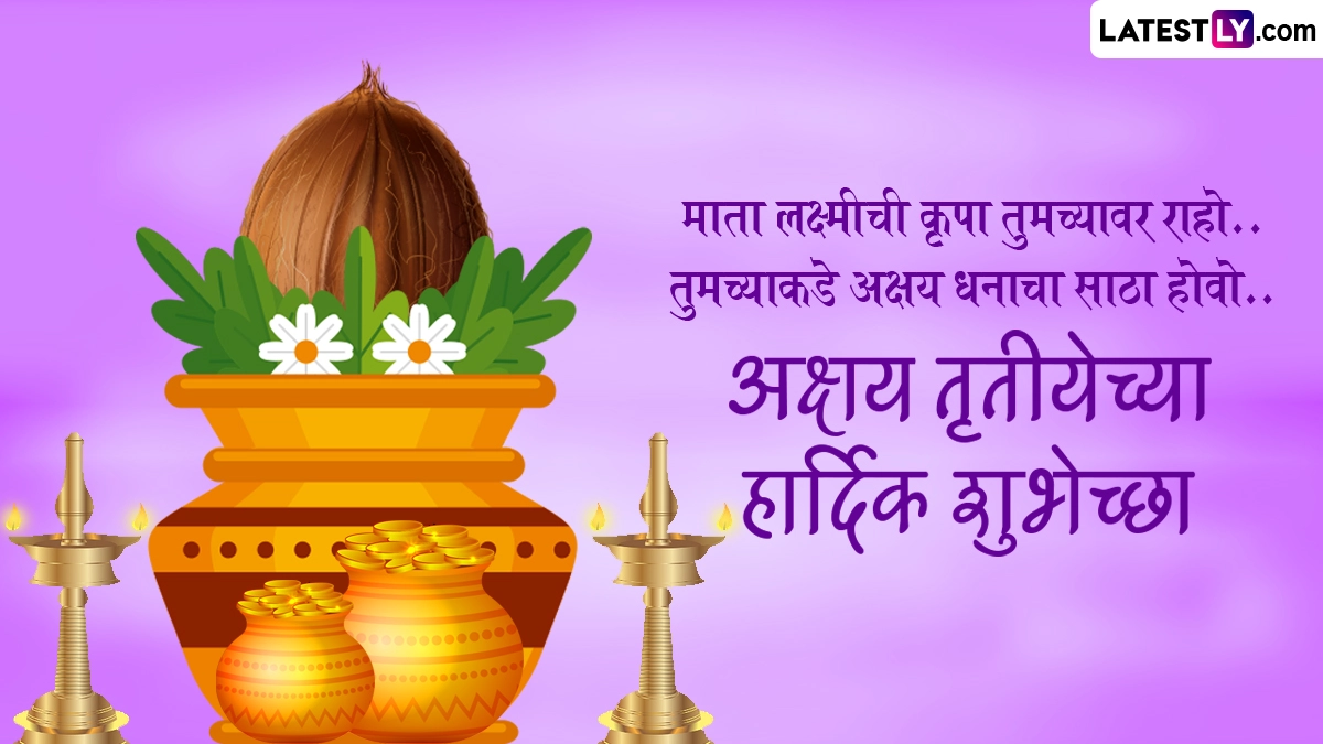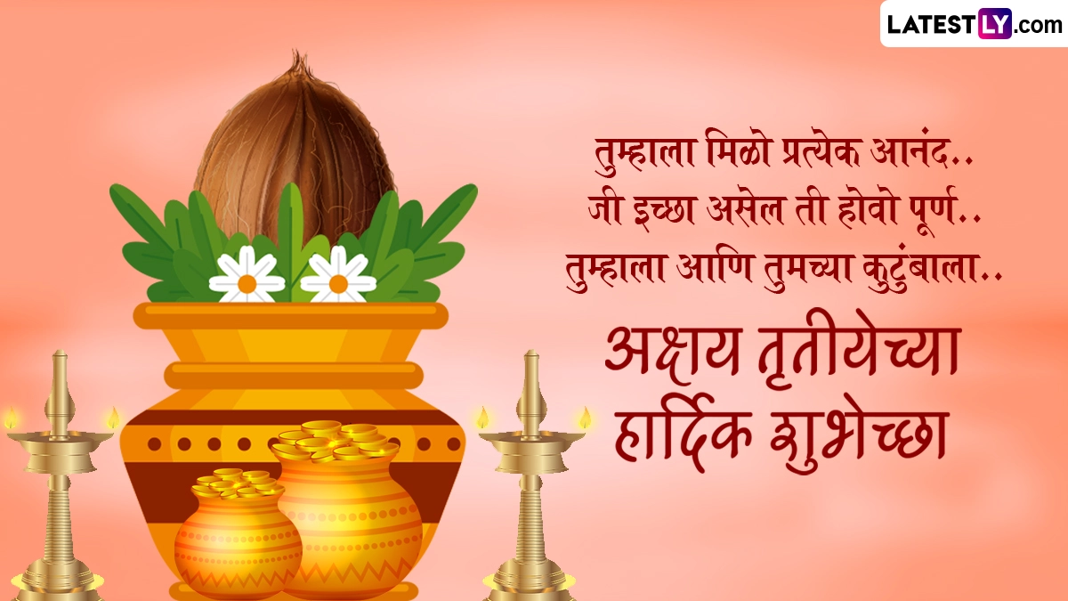 Akshay Tritiya 2024 Wishes in Marathi: वैशाख मास के शुक्ल पक्ष की तृतीया तिथि को अक्षय तृतीया (Akshay Tritiya) के नाम से जाना जाता है. ज्योतिषीय मान्यताओं के अनुसार, इस दिन सूर्य और चंद्रमा दोनों ही अपनी उच्च राशि में स्थित होते हैं, जिसे शुभ फलदायी माना जाता है. इस दिन मूल्यवान वस्तुओं की खरीदारी और दान-पुण्य जैसे कार्यों को करना काफी शुभ माना जाता है. इस दिन सोने के आभूषणो को खरीदना काफी शुभ माना जाता है. कहा जाता है कि अक्षय तृतीया के दिन सोने-चांदी की चीजों को खरीदने से भाग्योदय होता है. इस साल 10 मई को अक्षय तृतीया का पर्व मनाया जा रहा है. इसके अलावा पवित्र नदियों में स्नान-दान, ब्राह्मण भोज, श्राद्ध कर्म, यज्ञ और ईश्वर की उपासना जैसे कार्यों को करने से कभी न समाप्त होने वाले अक्षय पुण्य फलों की प्राप्ति होती है.