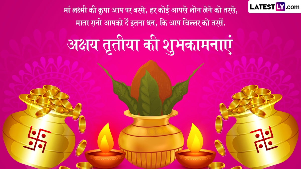 शास्त्रों में अक्षय तृतीया तिथि को स्वयं सिद्ध अबूझ मुहूर्त माना गया है, जिसका मतलब है इस तिथि पर बिना मुहूर्त का विचार किए सभी प्रकार के शुभ कार्य संपन्न किए जा सकते हैं. अक्षय तृतीया एक ऐसा पर्व है जिसके लिए लोग शुभकामना संदेशों का आदान-प्रदान भी करते हैं. ऐसे में आप भी इस खास अवसर पर इन शानदार हिंदी विशेज, वॉट्सऐप मैसेजेस, जीआईएफ ग्रीटिंग्स, कोट्स को भेजकर अपनों को अक्षय तृतीया की शुभकामनाएं दे सकते हैं.