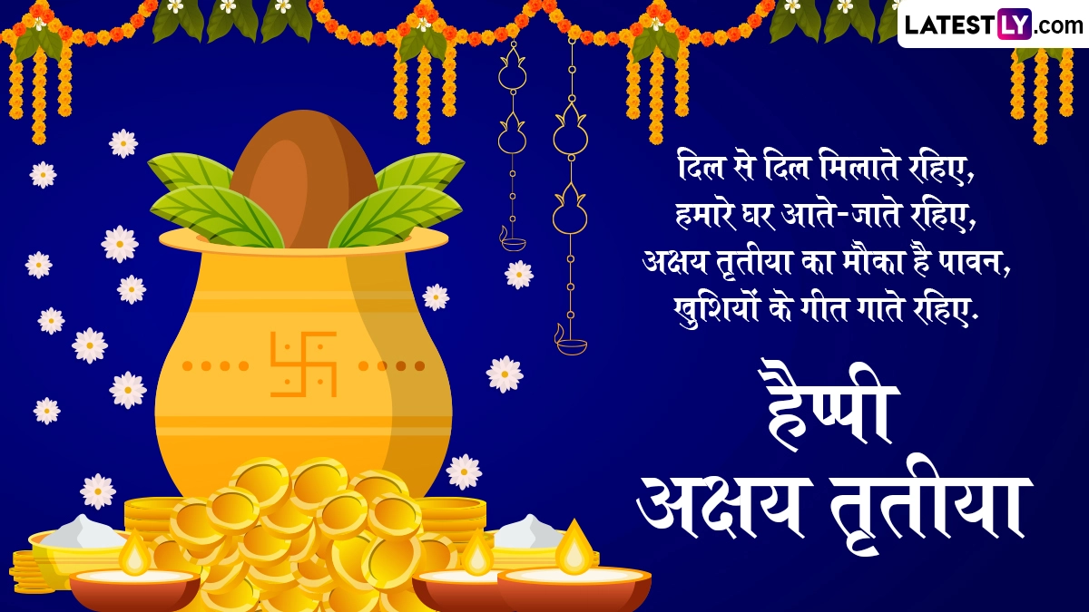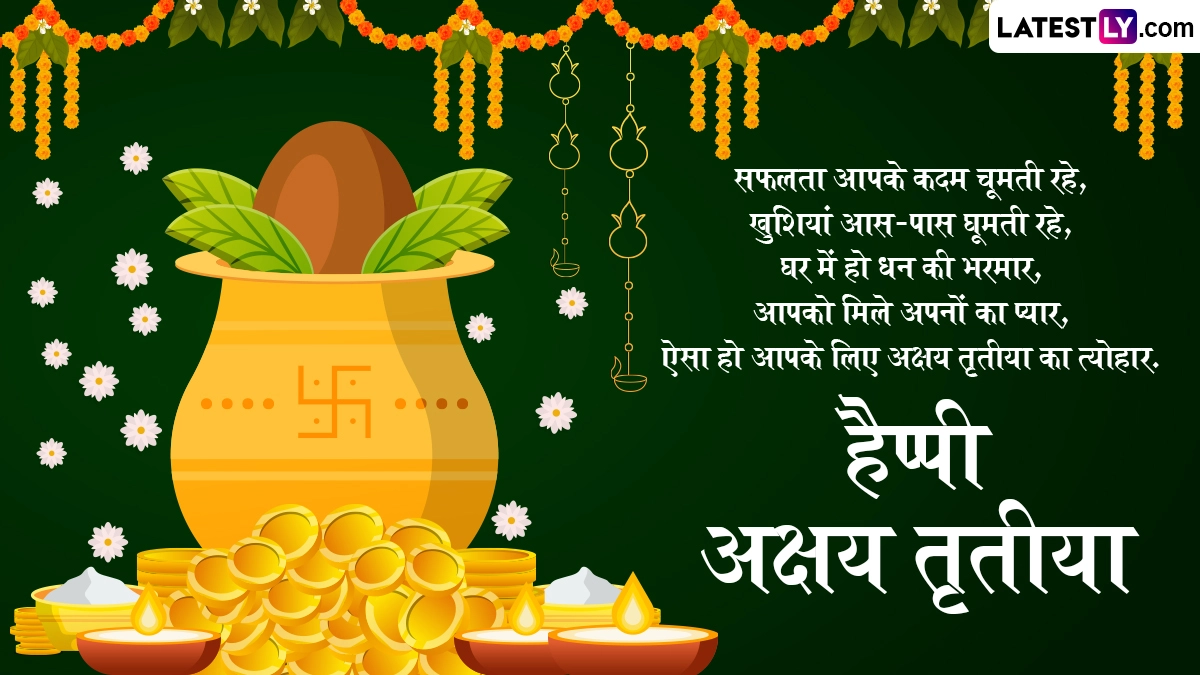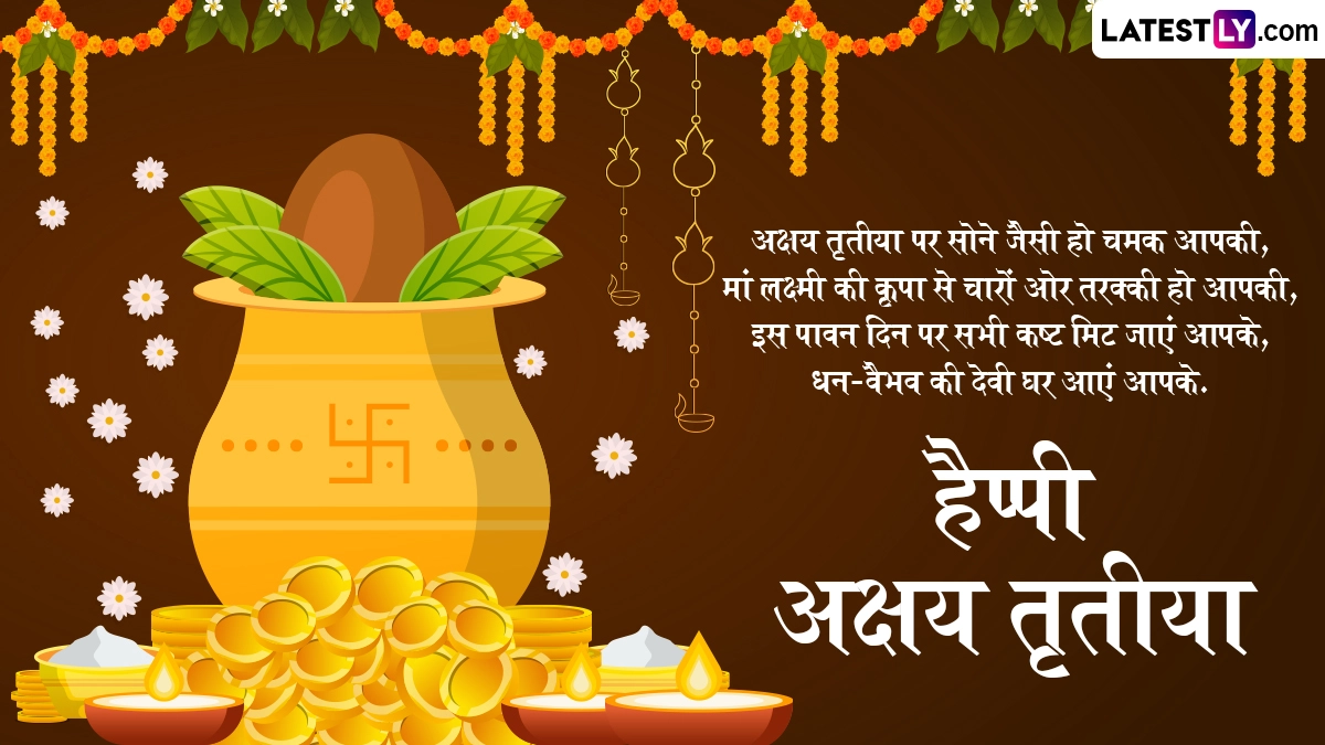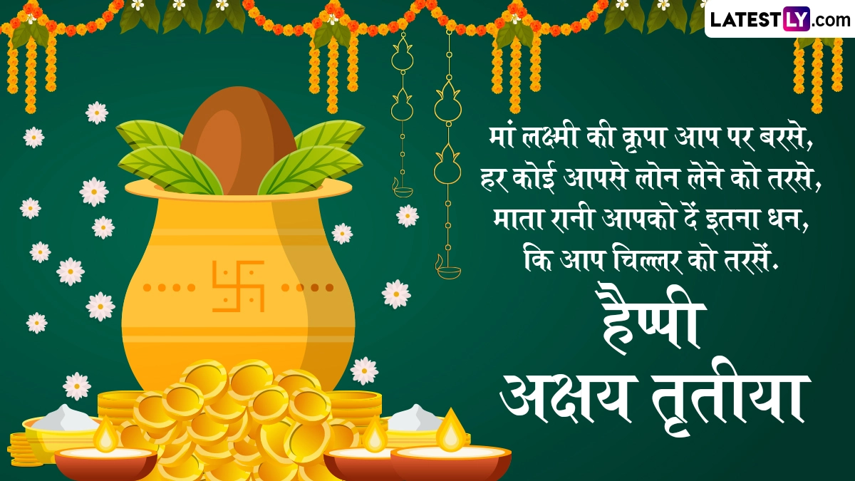 शुभ या नए कार्यों की शुरुआत करने के साथ ही अक्षय तृतीया के दिन सोने-चांदी के गहनों की खरीदारी और माता लक्ष्मी की पूजा का विशेष महत्व होता है. इस दिन किए गए दान-पुण्य के कार्यों से कभी न समाप्त होने वाले अक्षय पुण्य फलों की प्राप्ति होती है. इस अवसर पर आप इन हिंदी मैसेजेस, वॉट्सऐप विशेज, कोट्स, जीआईएफ ग्रीटिंग्स और एचडी इमेजेस को भेजकर प्रियजनों से हैप्पी अक्षय तृतीया कह सकते हैं.
