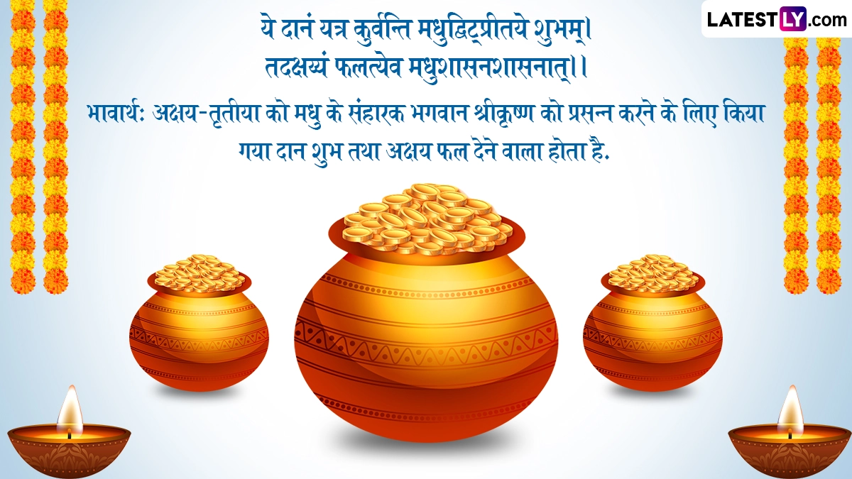 अक्षय तृतीया के इस विशेष अवसर पर अपने मित्रों और परिजनों को बधाई देने के लिए लोग सोशल मीडिया पर संस्कृत श्लोकों और शुभकामनाओं का उपयोग करते हैं. ऐसे में इस डिजिटल युग में आप भी इन विशेज, श्लोक, वॉट्सऐप स्टिकर्स, जीआईएफ ग्रीटिंग्स, फेसबुक मैसेजेस के जरिए अपनों को संस्कृत में शुभ अक्षय तृतीया कहकर बधाई दे सकते हैं.