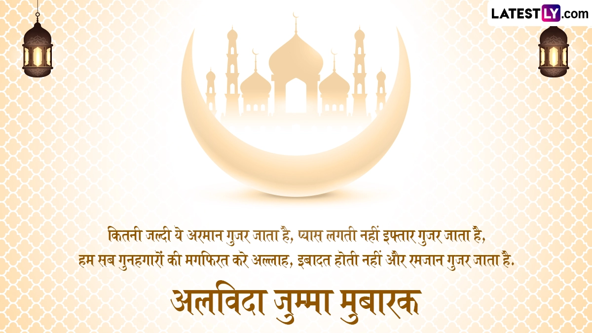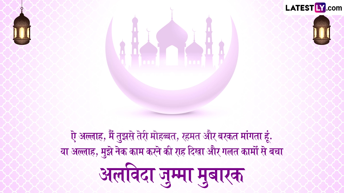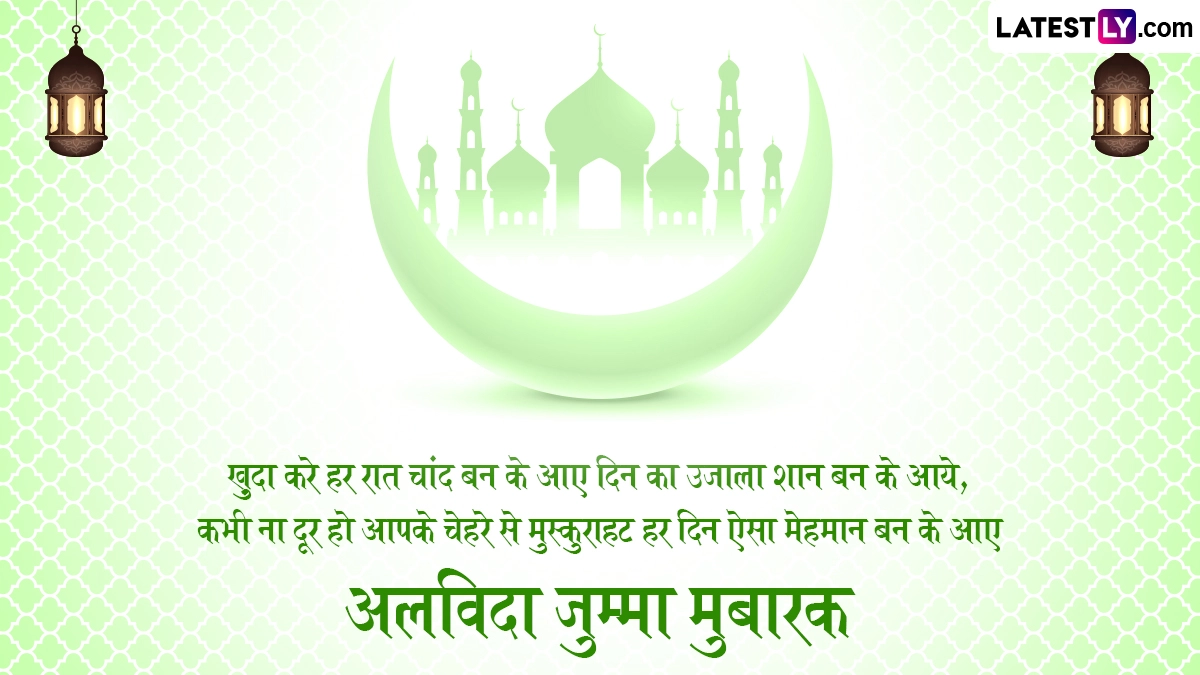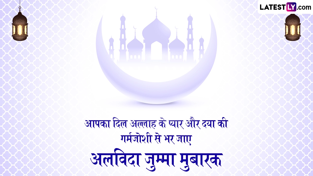 Alvida Jumma Mubarak 2025 Wishes: जैसे-जैसे रमज़ान का पवित्र महीना अपने समापन की ओर बढ़ रहा है, दुनिया भर के मुसलमान जुमा-उल-विदा की तैयारी कर रहे हैं, जिसे अलविदा जुम्मा (Alvida Jumma) के नाम से भी जाना जाता है, जो ईद-उल-फ़ित्र (Eid-ul-Fitr) से पहले रोज़े का आखिरी शुक्रवार है. इस खास दिन को सामूहिक प्रार्थना, उपदेश और दान-पुण्य के साथ मनाया जाता है, क्योंकि भक्त अल्लाह के आशीर्वाद की तलाश करते हैं. रमज़ान 2025 की शुरुआत 2 मार्च से हुई है और 28 मार्च (शुक्रवार) को जुमा-उल-विदा मनाया जाएगा, जो महीने का आखिरी शुक्रवार है. यह मुसलमानों के लिए एक महत्वपूर्ण अवसर है, जो ईद मनाने से पहले मस्जिदों में विशेष प्रार्थना और उपदेश के लिए इकट्ठा होते हैं. यह भी पढ़ें: Alvida Jumma Mubarak 2025 Messages: अलविदा जुम्मा मुबारक! प्रियजनों को भेजें ये हिंदी Shayaris, GIF Greetings, WhatsApp Wishes और HD Images