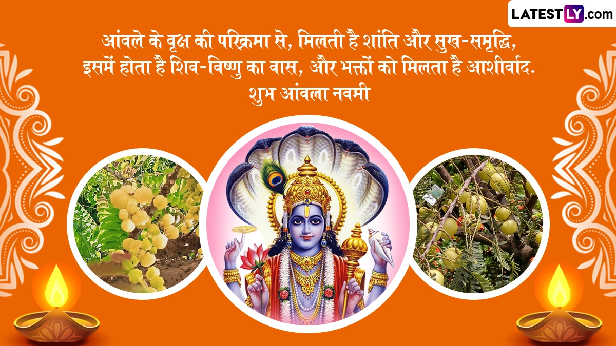 Amla Navami 2025 Messages in Hindi: दिवाली (Diwali) के कुछ दिन बाद और देव उठनी एकादशी से दो दिन पहले आंवला नवमी (Amla Navami) का पर्व मनाया जाता है, जिसका हिंदू धर्म में विशेष महत्व बताया जाता है. हिंदू पंचांग के अनुसार, आंवला नवमी यानी अक्षय नवमी का पर्व हर साल कार्तिक मास के शुक्ल पक्ष की नवमी तिथि को मनाया जाता है, जबकि उदयातिथि के अनुसार, इस साल 31 अक्टूबर 2025 को आंवला नवमी मनाई जा रही है. इस पर्व से जुड़ी पौराणिक कथा के अनुसार, एक बार मां लक्ष्मी पृथ्वी पर भ्रमण करने आईं और धरती पर आने के बाद उन्हें भगवान विष्णु और शिव जी की पूजा एक साथ करने की इच्छा हुई. इसके बाद मां लक्ष्मी को स्मरण हुआ कि भगवान विष्णु की प्रिय तुलसी और भगवान शिव के प्रिय बेल के गुण आंवले में पाए जाते हैं, इसलिए माता लक्ष्मी ने आंवले के पेड़ की पूजा की, जिससे प्रसन्न होकर भगवान विष्णु और भगवान शिव साक्षात प्रकट हुए. पूजन के बाद मां लक्ष्मी ने आंवले के वृक्ष के नीचे ही भोजन बनाया और श्रीहरि व शिवजी को भोजन कराया, उसके बाद स्वयं भी भोजन किया. कहा जाता है कि तब से आंवला नवमी पर आंवले के वृक्ष की पूजा करने की इस परंपरा की शुरुआत हुई.