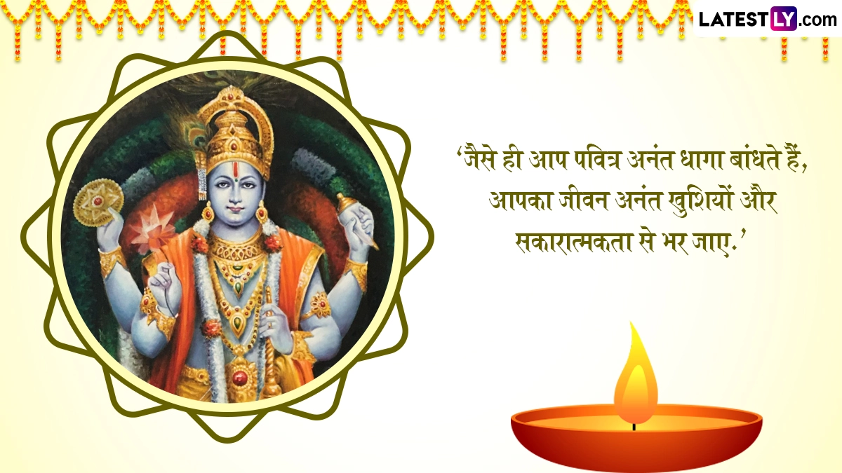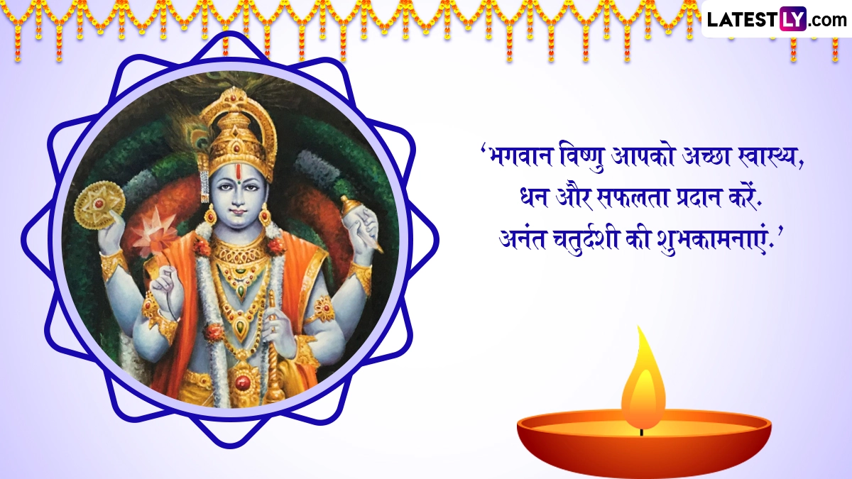 Anant Chaturdashi 2024 Messages: गणेश उत्सव (Ganesh Utsav) इस समय पूरे देश में बड़े उत्साह के साथ मनाया जा रहा है. 10 दिनों तक चलने वाले इस उत्सव में भक्तगण भगवान गणेश की सेवा में समर्पित होकर उनके पसंदीदा व्यंजनों का भोग लगाते हैं, साथ ही पूजा-अर्चना और आरती भी करते हैं. इस उत्सव का समापन अनंत चतुर्दशी के दिन होता है, जो अपने आप में एक महत्वपूर्ण दिन है. इस साल यह दिन मंगलवार, 17 सितंबर को है. इस दिन भगवान विष्णु के विभिन्न स्वरूपों की पूजा की जाती है और भगवान गणेश का विसर्जन भी किया जाता है. यह भी पढ़ें: Anant Chaturdashi 2024 Messages: अनंत चतुर्दशी पर श्रीहरि के इन WhatsApp Stickers, Facebook Greetings, GIF Images के जरिए दें शुभकामनाएं