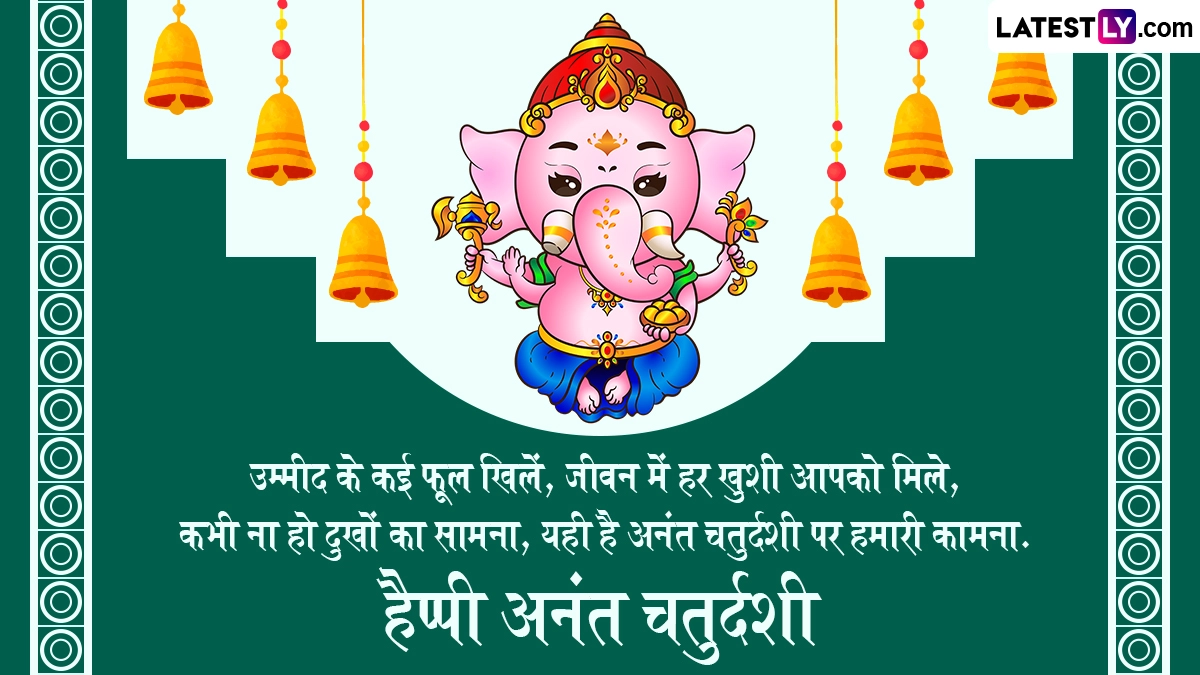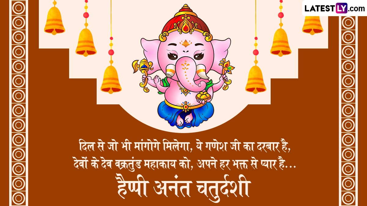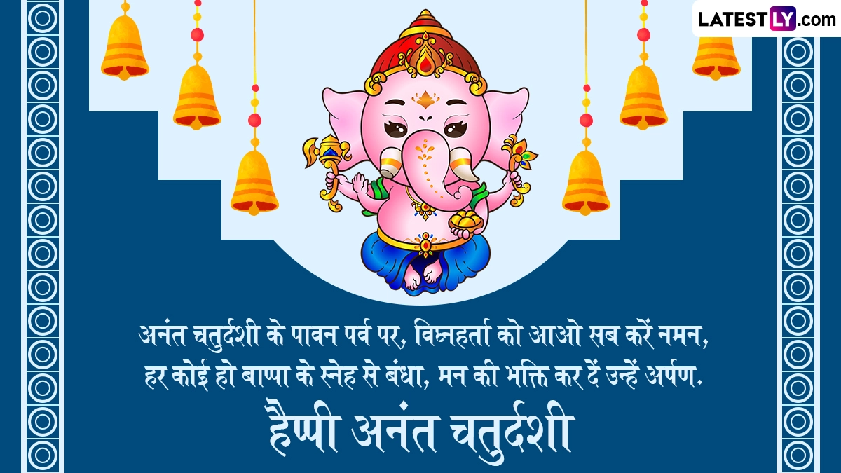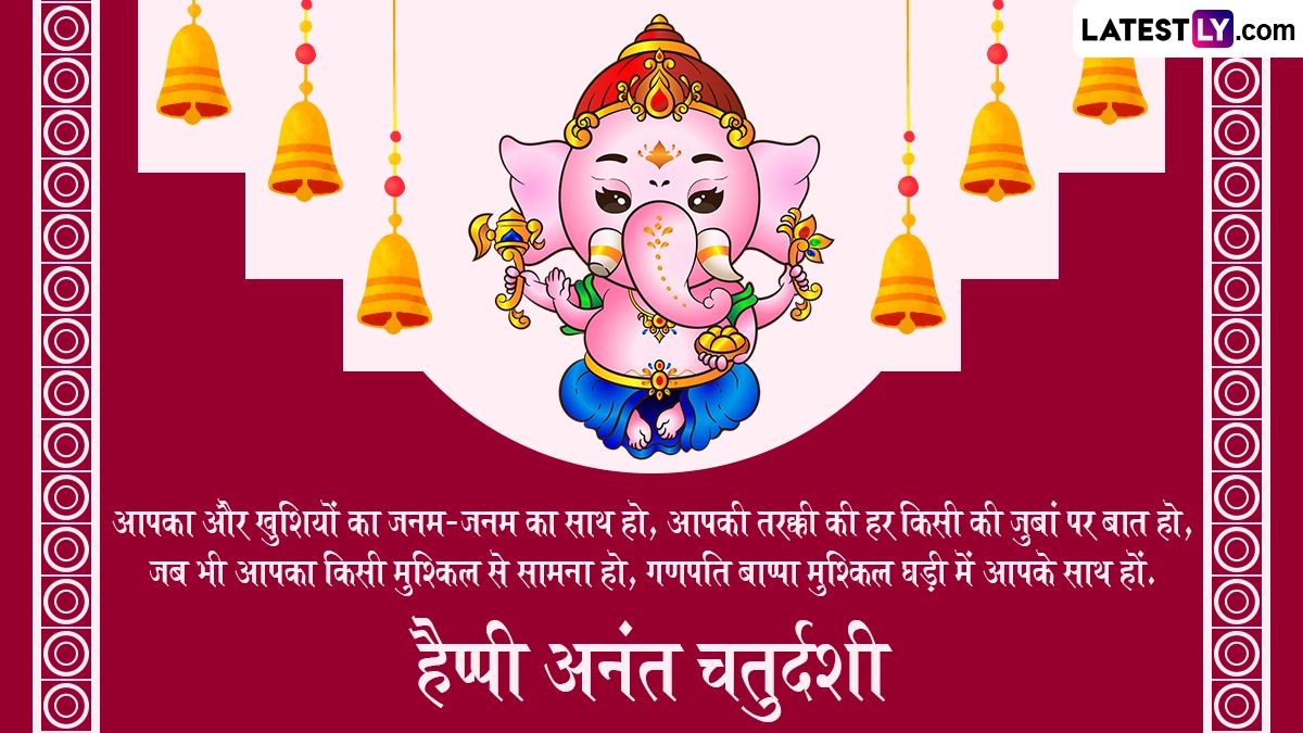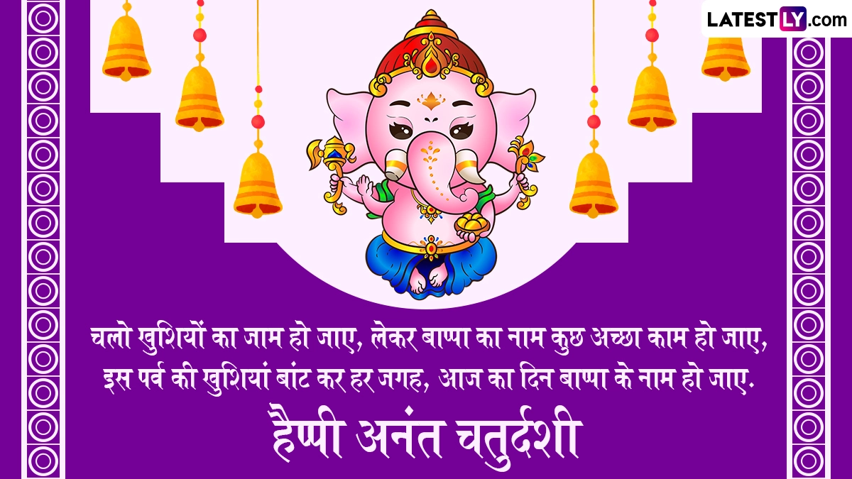 गणेश चतुर्थी के दिन भक्त धूमधाम से गणपति बप्पा की प्रतिमाओं को अपने घरों और सार्वजनिक पंडालों में स्थापित करते हैं, फिर दस दिनों तक लोग पूरे विधि-विधान से उनकी आराधना करते हैं. इसके बाद अनंत चतुर्दशी के दिन भक्त ‘गणपति बप्पा मोरया, अगले बरस तू जल्दी आ’ के जयकारे लगाकर उनका विसर्जन करते हैं. इस खास अवसर पर आप इन भक्तिमय मैसेजेस, कोट्स, वॉट्सऐप विशेज, जीआईएफ ग्रीटिंग्स को भेजकर अपनों से हैप्पी अनंत चतुर्दशी कहते हुए बप्पा को विदाई दे सकते हैं.