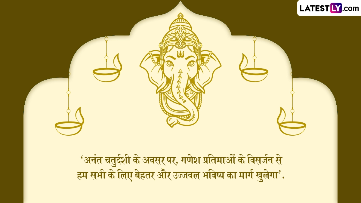 Anant Chaturdashi 2024 Quotes: सनातन धर्म में अनंत चतुर्दशी (Anant Chaturdashi) पर्व का विशेष महत्व है, क्योंकि भाद्रपद शुक्ल पक्ष की चतुर्दशी को भगवान गणेश (Bhagwan Ganesh) की प्रतिमा का विसर्जन होने के साथ-साथ इसी दिन भगवान विष्णु (Bhagwan Vishnu) की पूजा एवं व्रत आदि का भी आयोजन किया जाता है. मान्यता है कि इस दिन भगवान विष्णु की पूजा करने से जातक के जीवन की सारी बाधाएं दूर होती हैं, जीवन में सुख, शांति और समृद्धि वास करती है. वहीं इस दिन दस दिवसीय गणोशोत्सव (Ganeshotsav) के बाद भगवान गणेश की प्रतिमाओं का विसर्जन किया जाता है. इस साल 17 सितंबर 2024, मंगलवार को अनंत चतुर्दशी मनाई जाएगी और इसी के साथ गणेशोत्सव का समापन हो जाएगा.