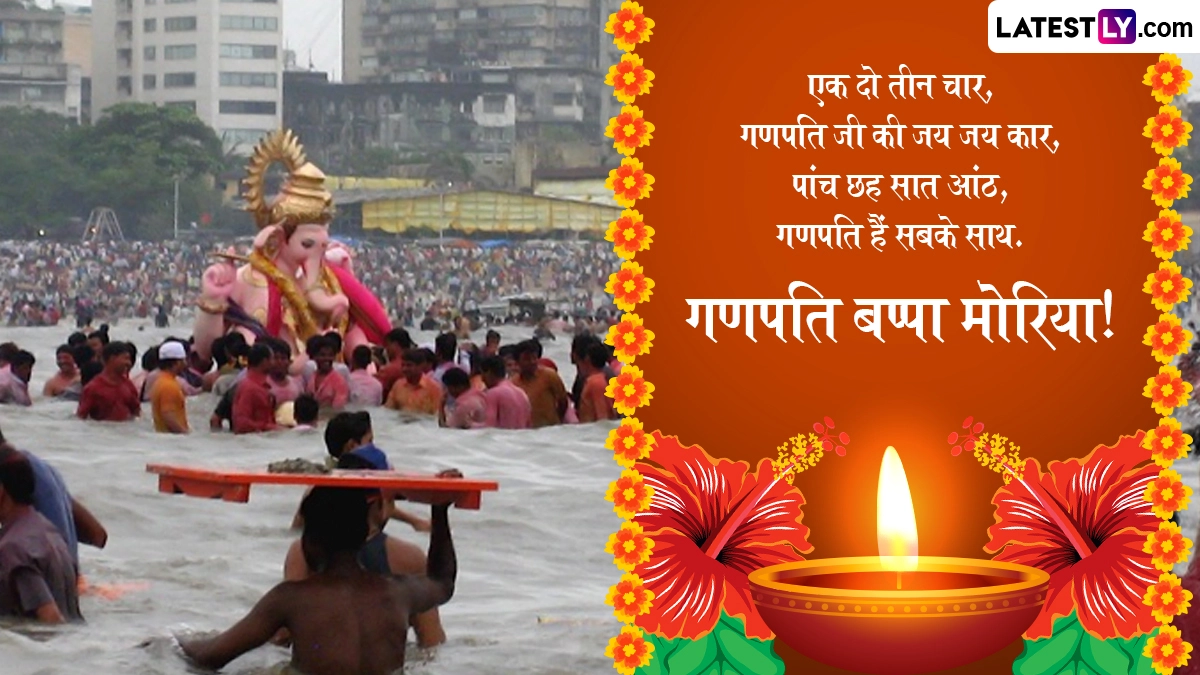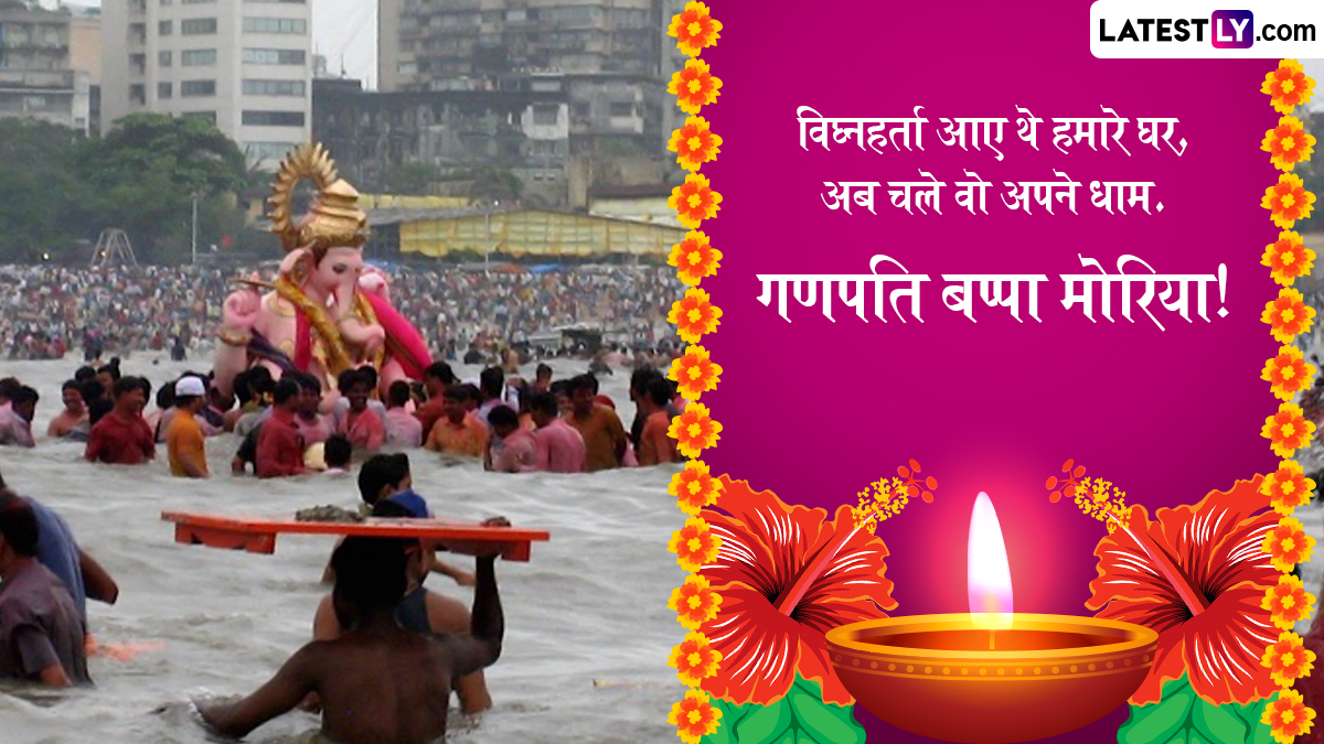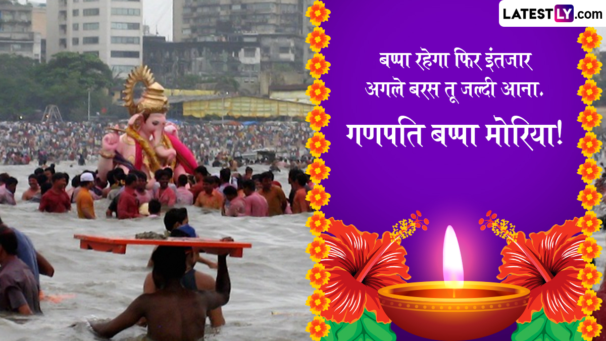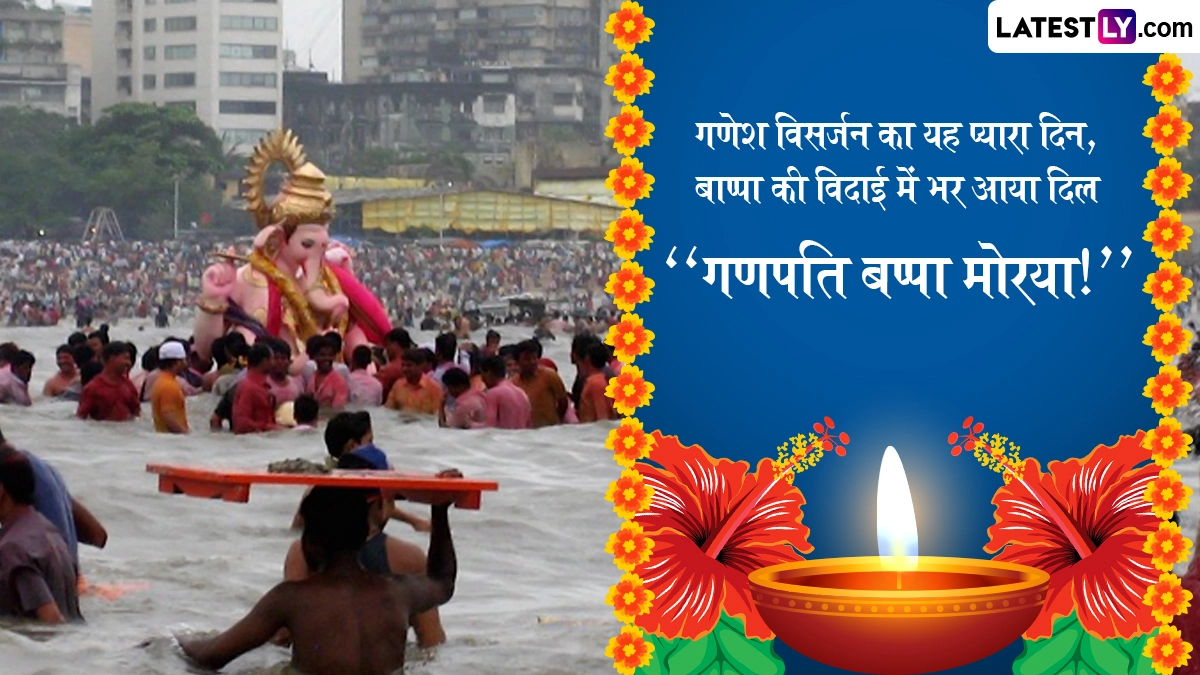 अनंत चतुर्दशी के दिन भक्त नम आंखों से गणपति बप्पा को विदाई देते हैं और अगले बरस जल्दी वापस आने की कामना करते हैं. गणपति विसर्जन के दिन हर तरफ गणपति बप्पा मोरया, अगले बरस तू जल्दी आ के जयकारे सुनाई देते हैं. अनंत चतुर्दशी के इस खास अवसर पर आप इन भक्तिमय हिंदी विशेज, वॉट्सऐप मैसेजेस, कोट्स, फेसबुक ग्रीटिंग्स के जरिए गणपति बप्पा को विदाई दे सकते हैं.