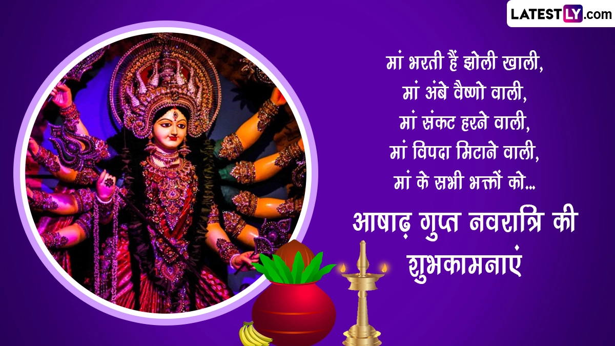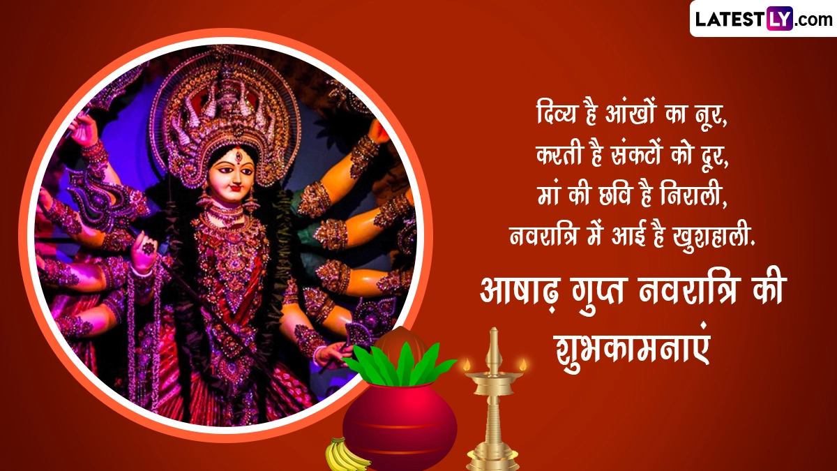 Ashadha Gupt Navratri 2024 Messages in Hindi: हिंदू धर्म में मां दुर्गा (Maa Durga) की उपासना के महापर्व नवरात्रि (Navratri) का विशेष महत्व होता है, क्योंकि नवरात्रि के नौ दिनों तक मां दुर्गा के नौ स्वरूपों और दस महाविद्याओं की उपासना की जाती है. हालांकि साल में चार बार नवरात्रि मनाई जाती है, जिनमें से चैत्र नवरात्रि और शारदीय नवरात्रि को धूमधाम से मनाया जाता है, जबकि दो नवरात्रियां गुप्त नवरात्रि (Gupt Navratri) कहलाती है. जो लोग तंत्र-मंत्र और सिद्धियों की कामना रखते हैं, उनके लिए गुप्त नवरात्रि काफी महत्वपूर्ण मानी जाती है. हिंदू पंचाग के अनुसार, आषाढ़ मास की गुप्त नवरात्रि आषाढ़ शुक्ल प्रतिपदा से आषाढ़ शुक्ल नवमी तक मनाई जाती है, जो इस साल 6 जुलाई से 15 जुलाई तक मनाई जाएगी. गुप्त नवरात्रि में उपासक मां दुर्गा के नौ स्वरूपों के अलावा दस महाविद्याओं की उपासना करते हैं.