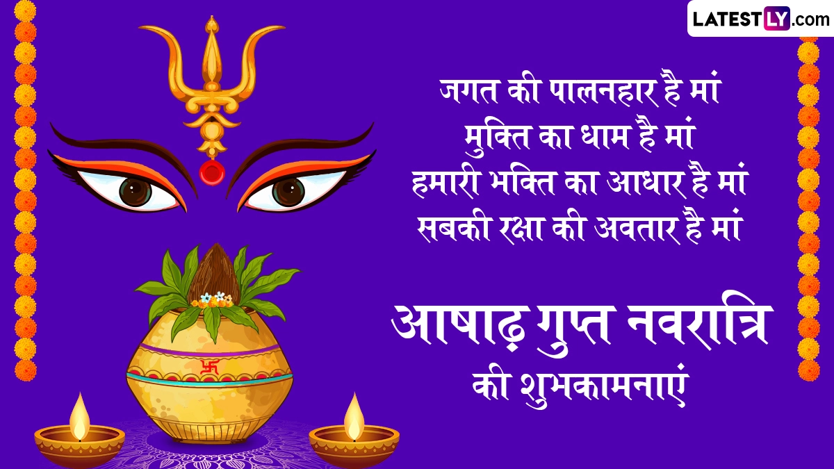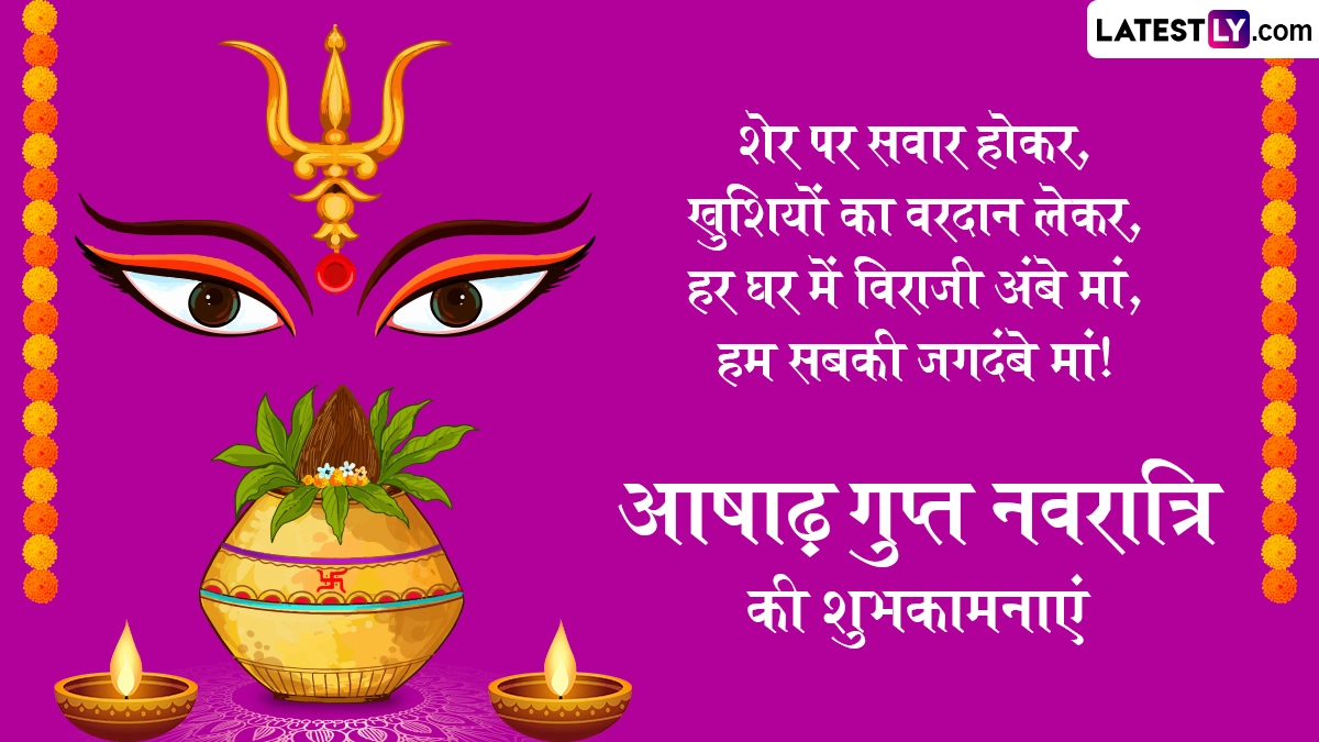 Ashadha Gupt Navratri 2025 Wishes in Hindi: मां दुर्गा (Maa Durga) की भक्ति और उपासना के नौ दिवसीय महापर्व नवरात्रि (Navratri) को वैसे तो साल भर में 4 बार मनाया जाता है, लेकिन उनमें चैत्र नवरात्रि (Chaitra Navratri) और शारदीय नवरात्रि (Sharad Navratri) को देशभर में धूमधाम से मनाया जाता है, जबकि माघ और आषाढ़ मास की नवरात्रि गुप्त नवरात्रि कहलाती है. इस साल आषाढ़ मास की गुप्त नवरात्रि 26 जून 2025 से शुरु हो रही है और इसका समापन 4 जुलाई 2025 को होगा. गुप्त नवरात्रि के दौरान मां दुर्गा के नौ स्वरूपों के अलावा दस महाविद्याओं की विशेष रूप से साधना की जाती है. इन दस महाविद्याओं में मां काली, मां तारा, मां छिन्नमस्ता, मां षोडशी, मां भुवनेश्वरी, मां त्रिपुर भैरवी (त्रिपुर सुंदरी), मां धूमावती, मां बगलामुखी, मां मातंगी और मां कमला शामिल हैं. कहा जाता है कि इन दस महाशक्तिशाली देवियों की जिन भक्तों पर कृपा हो जाती है, उनके लिए इस संसार में कुछ भी असंभव नहीं होता है.