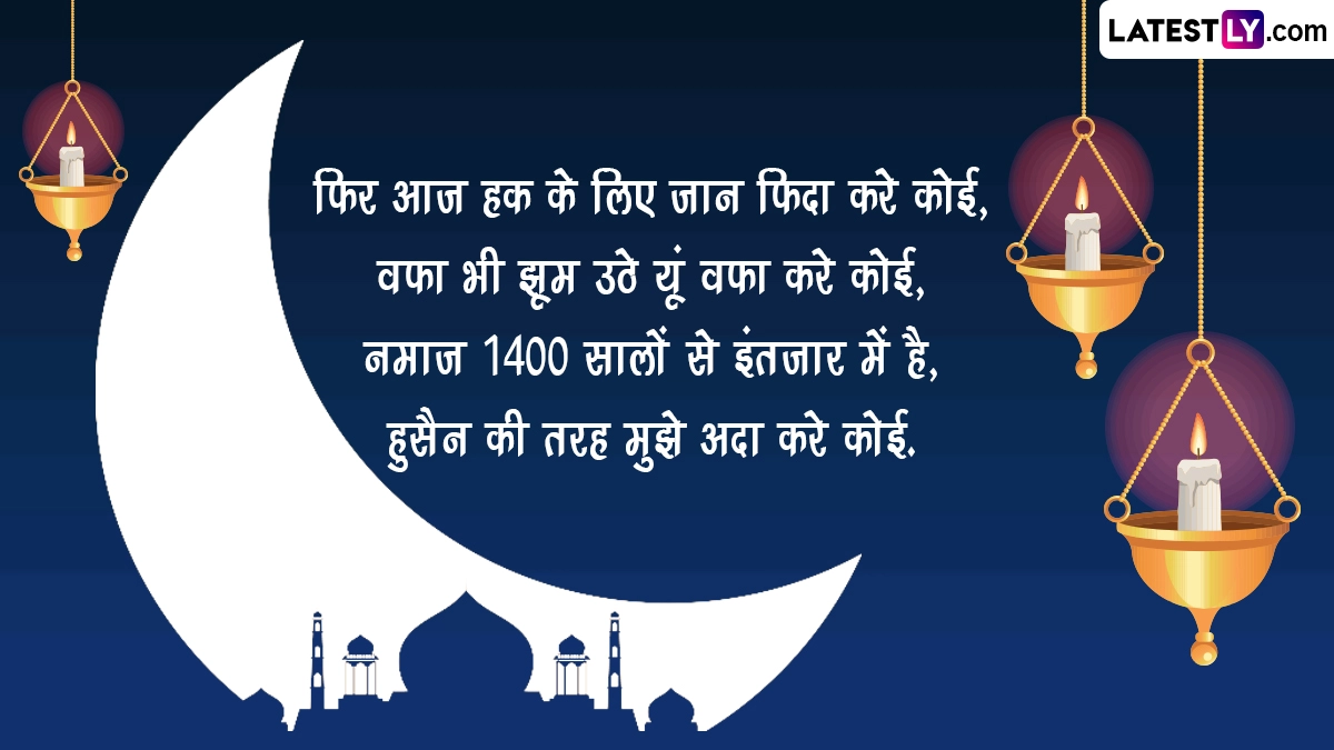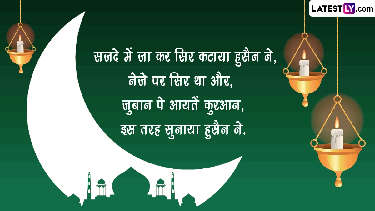 Ashura 2024 Messages in Hindi: इस्लाम धर्म में रमजान (Ramzan) के बाद मुहर्रम (Muharram) को दूसरा सबसे पवित्र महीना माना जाता है, जो इस्लामिक कैलेंडर का पहला महीना होता है. इस महीने को सुन्नी और शिया दोनों समुदायों के लिए बेहद खास माना जाता है. मुहर्रम की शुरुआत बकरीद के करीब 20 दिन बात होती है और इस साल 7 जुलाई 2024 से इस महीने की शुरुआत हुई है. मुहर्रम महीने के 10वें दिन आशूरा (Ashura) होता है, जिसका इस्लाम धर्म में काफी महत्व बताया जाता है. मुहर्रम की 10वीं तारीख को यौम-ए-आशूरा (Youm-e-Ashura) के नाम से जाना जाता है और इस साल 17 जुलाई को आशूरा मनाया जा रहा है. दरअसल, आशूरा मातम का दिन होता है और हजरत इमाम हुसैन की शहादत को याद करते हुए मुस्लिम समुदाय के लोग आशूरा के दिन मातम मनाते हैं.