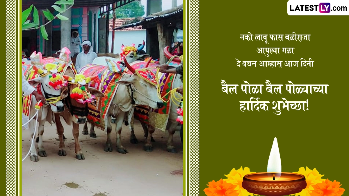 Bail Pola 2025 Wishes in Marathi: हिंदू संस्कृति में पशुओं के प्रति सम्मान और श्रद्धा की परंपरा अत्यंत प्राचीन है. अनेक पर्वों और उत्सवों में पशुओं की पूजा एक अहम भूमिका निभाती है. विशेष रूप से किसानों के लिए बैल और गाय केवल पालतू जानवर नहीं, बल्कि परिवार का अभिन्न हिस्सा होते हैं. इसी भावना को दर्शाता है बैल पोला, जो भारत के प्रमुख कृषि राज्यों में बड़ी श्रद्धा और उल्लास के साथ मनाया जाता है. बैल पोला (Bail Pola 2025) विशेष रूप से महाराष्ट्र, मध्य प्रदेश, छत्तीसगढ़ और कर्नाटक के ग्रामीण क्षेत्रों में मनाया जाता है. यह त्योहार उन बैल और गायों के सम्मान में आयोजित किया जाता है, जो वर्ष भर किसानों के साथ खेतों में मेहनत करते हैं. भाद्रपद माह की अमावस्या को मनाया जाने वाला यह पर्व पिठोरी अमावस्या, कुशाग्रहणी या कुशोत्पाटिनी अमावस्या के नाम से भी जाना जाता है. साल 2025 में बैल पोला का पर्व 23 अगस्त (शनिवार) को मनाया जाएगा. इस दिन किसान अपने खेतों में कार्य नहीं करते, बल्कि परिवार के साथ घर पर रहकर मवेशियों की पूजा करते हैं. यह भी पढ़ें: Pithori Amavasya 2025: 22 अगस्त को मनाई जायेगा पिठोरी अमावस्या का पर्व, जानें पितृ पूजा का खास मुहूर्त