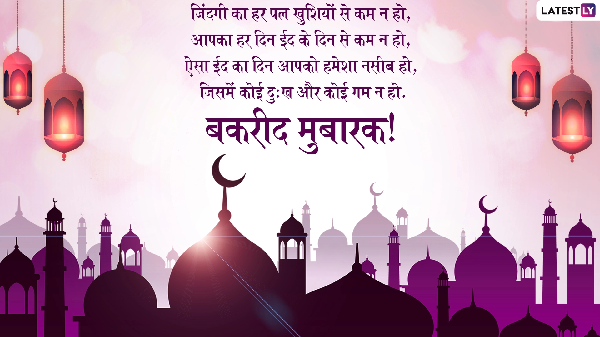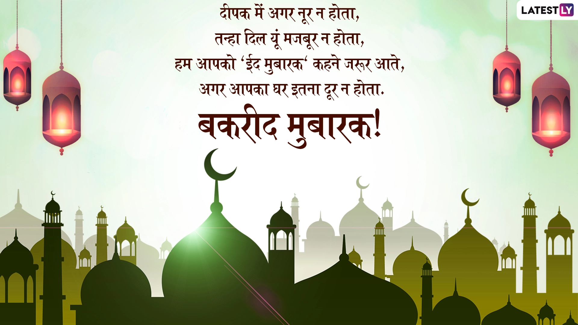 कुर्बानी के इस पर्व पर लोग एक-दूसरे से गले मिलकर ईद की मुबारकबाद देते हैं. बेशक आप भी अपने दोस्तों, रिश्तेदारों और करीबियों के साथ मिलकर ईद का जश्न मनाने की तैयारी में होंगे, लेकिन उससे पहले इन शानदार WhatsApp Stickers, Facebook Greetings, HD Wallpapers, GIF Images, Photo SMS और शायरियों को भेजकर बकरीद मुबारक कहना न भूलें.