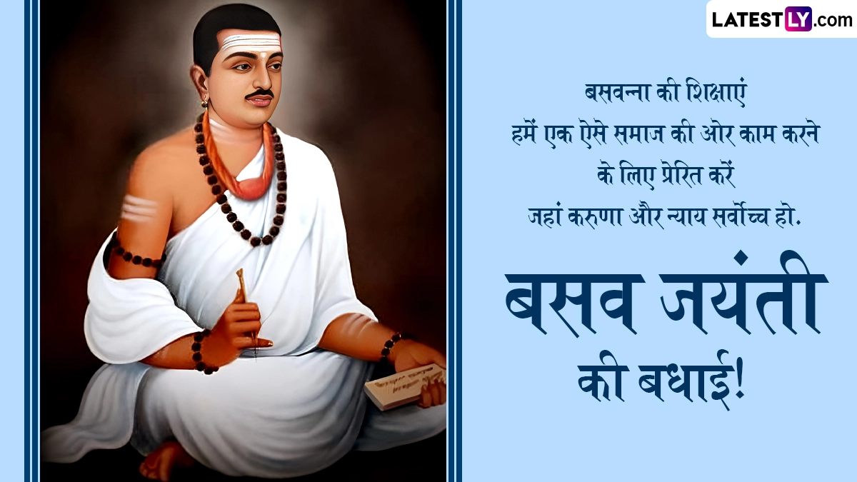 बसवन्ना एक महान कवि, समाज सुधारक और दार्शनिक निकले. कविता के माध्यम से उन्होंने सामाजिक जागृति फैलाना शुरू किया. लिंग या सामाजिक पूर्वाग्रह को खारिज कर दिया गया और उनके द्वारा इष्टलिंग हार पेश किया गया. बिज्जल के राज्य के मुख्यमंत्री होने के नाते, बसवन्ना ने अनुभव मंडप की शुरुआत की, जो बाद में सभी वर्गों के लोगों के लिए जीवन के आध्यात्मिक मुद्दों पर खुलकर चर्चा करने का सामान्य केंद्र बन गया. बसवेश्वर के साहित्यिक कार्यों में वचन साहित्य शामिल है. बसव जयंती के इस शुभ अवसर पर आप इन शानदार विशेज, वॉट्सऐप स्टिकर्स, जीआईएफ ग्रीटिंग्स, एचडी इमेजेस, वॉलपेपर्स को शेयर कर शुभकामनाएं दे सकते हैं.