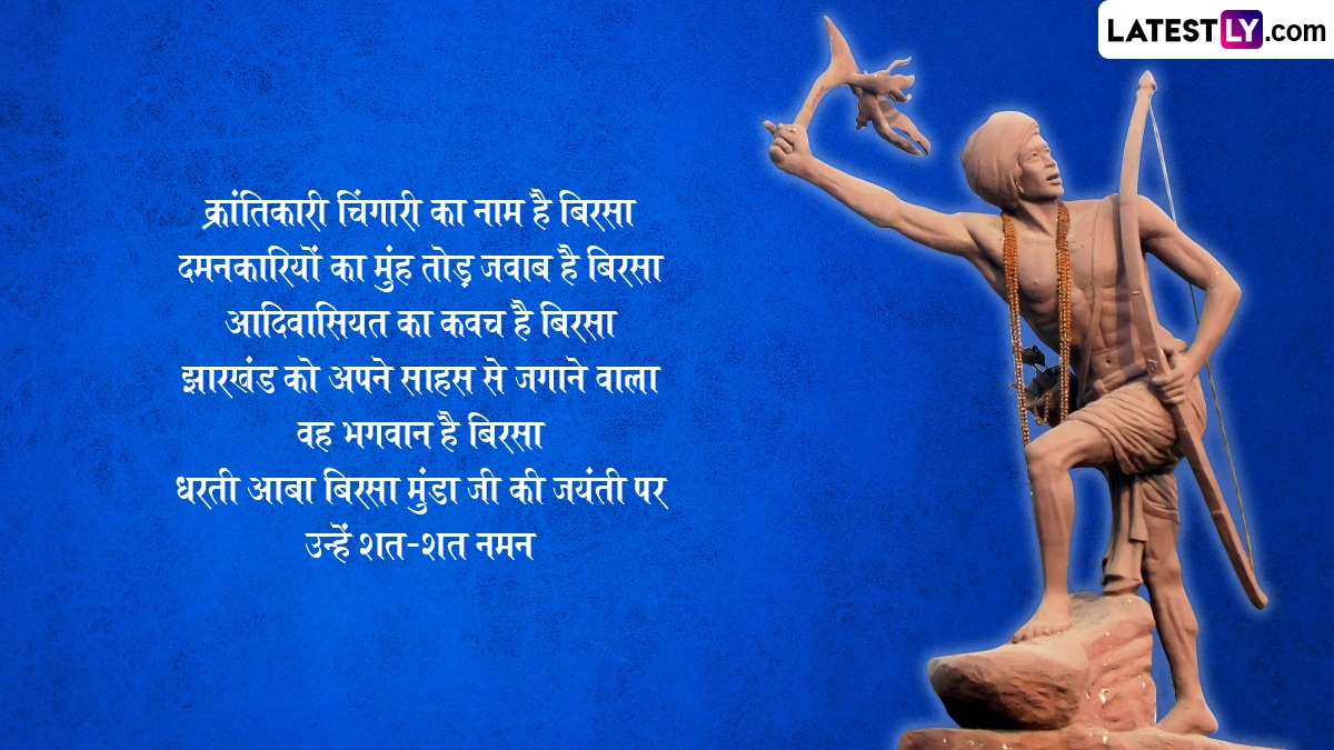 Birsa Munda Jayanti 2024: 15 नवंबर 1875 को खूंटी जिले के उलिहातु नामक गांव में पैदा हुए बिरसा मुंडा न केवल एक भारतीय स्वतंत्रता सेनानी और आदिवासी नेता थे, बल्कि एक धार्मिक सुधारक भी थे. वे वर्तमान झारखंड के छोटानागपुर पठार क्षेत्र के मुंडा जनजाति से थे. वर्ष 2024 में भारत सरकार ने 15 नवंबर, बिरसा मुंडा की जयंती को 'जनजातीय गौरव दिवस' के रूप में घोषित किया. यह दिन झारखंड राज्य के गठ न से मेल खाता है, जिसे झारखंड स्थापना दिवस के रूप में भी जाना जाता है. 15 नवंबर 2000 को छोटानागपुर क्षेत्र को बिहार के दक्षिणी आधे हिस्से से अलग कर दिया गया, जिससे औपचारिक रूप से झारखंड (वनों की भूमि) राज्य का गठन हुआ और यह भारतीय संघ का 28वां राज्य बना. यह भी पढ़ें: Birsa Munda Jayanti 2024 Greetings: आदिवासी भगवान बिरसा मुंडा की जयंती पर ये HD Wallpapers और HD Images भेजकर करें याद