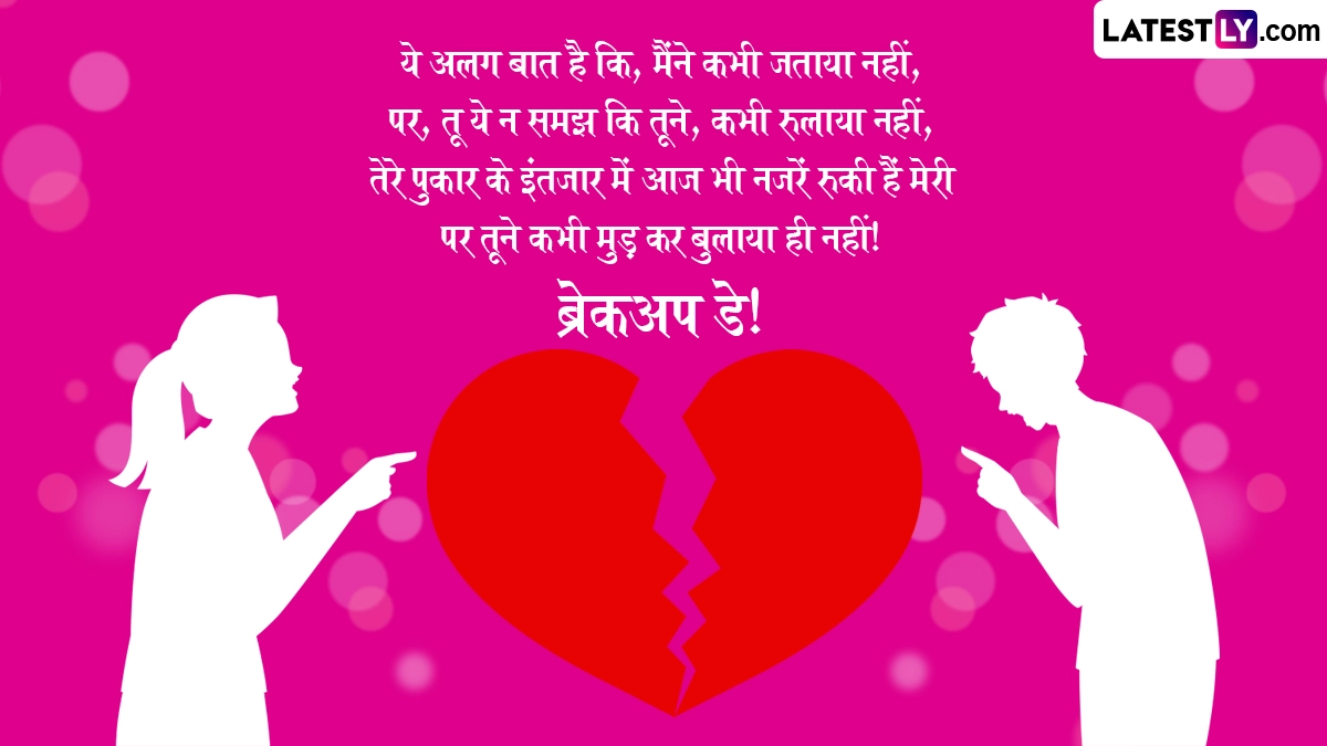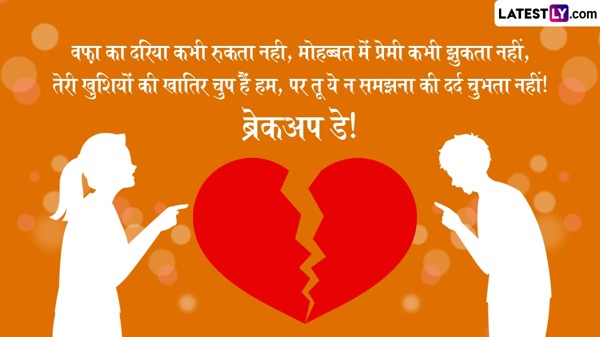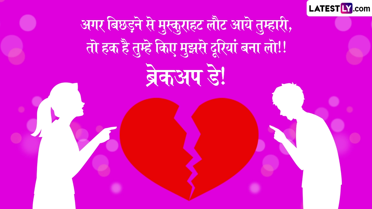 Breakup Day 2026 Wishes in Hindi: प्यार और रोमांस के सप्ताह 'वैलेंटाइन वीक' (Valentine Week) के ठीक बाद 'एंटी-वैलेंटाइन वीक' (Anti-Valentine Week) की शुरुआत होती है, जिसका समापन 21 फरवरी को 'ब्रेकअप डे' (Breakup Day) के साथ होता है. यह दिन उन लोगों के लिए एक महत्वपूर्ण मोड़ माना जाता है जो किसी अस्वस्थ या तनावपूर्ण रिश्ते में फंसे हुए हैं. ब्रेकअप डे केवल एक रिश्ते के अंत का प्रतीक नहीं है, बल्कि यह नकारात्मकता को छोड़कर खुद की खुशी और मानसिक शांति को चुनने का एक साहसिक कदम है.