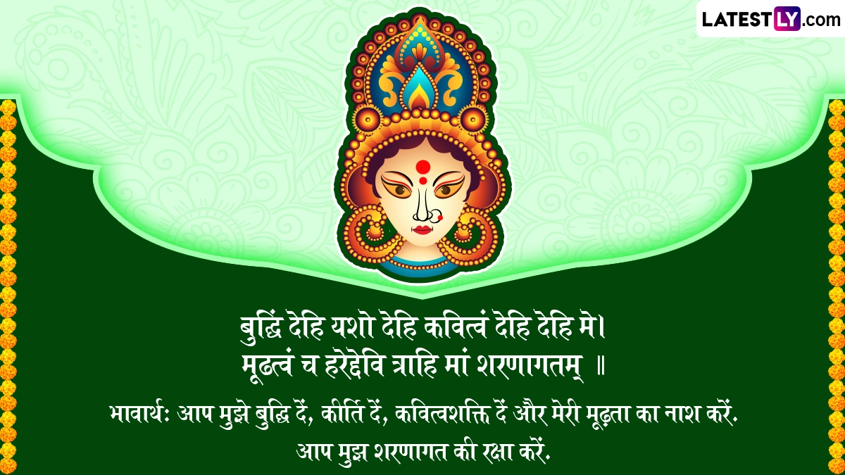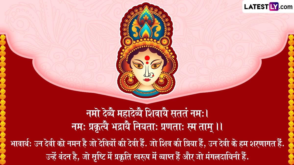 भावार्थ: उन देवी को नमन है जो देवियों की देवी हैं. जो शिव की प्रिया हैं, उन देवी के हम शरणागत हैं. उन्हें वंदन है, जो सृष्टि में प्रकृति स्वरूप में व्याप्त हैं और जो मंगलदायिनी हैं.