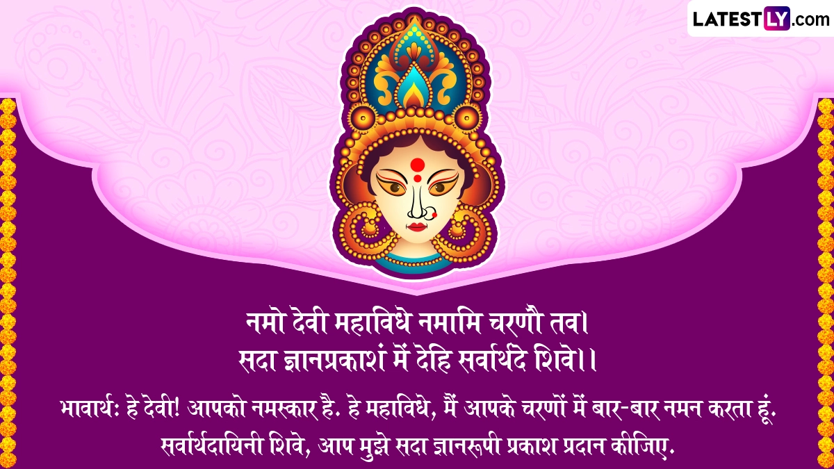 भावार्थ: हे देवी! आपको नमस्कार है. हे महाविधे, मैं आपके चरणों में बार-बार नमन करता हूं. सर्वार्थदायिनी शिवे, आप मुझे सदा ज्ञानरूपी प्रकाश प्रदान कीजिए.