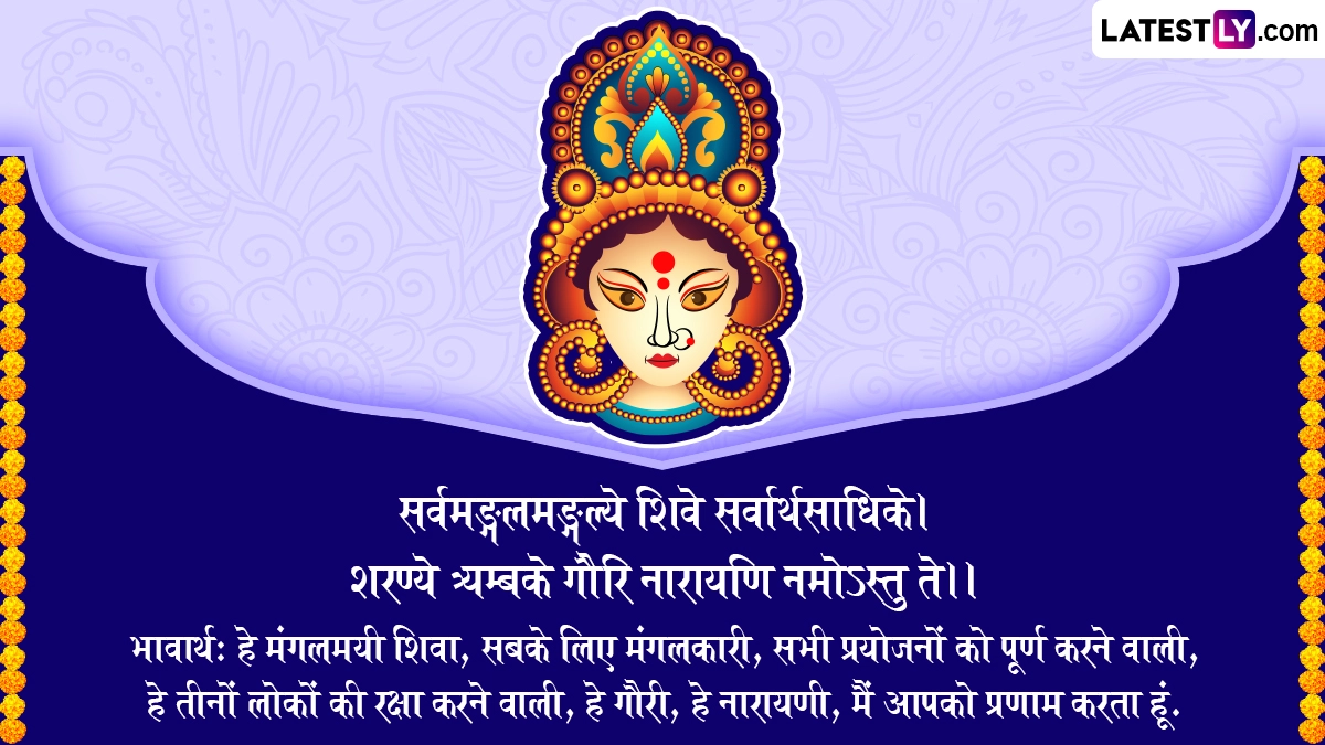 भावार्थ: हे मंगलमयी शिवा, सबके लिए मंगलकारी, सभी प्रयोजनों को पूर्ण करने वाली, हे तीनों लोकों की रक्षा करने वाली, हे गौरी, हे नारायणी, मैं आपको प्रणाम करता हूं.