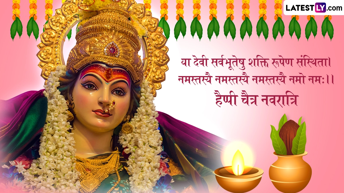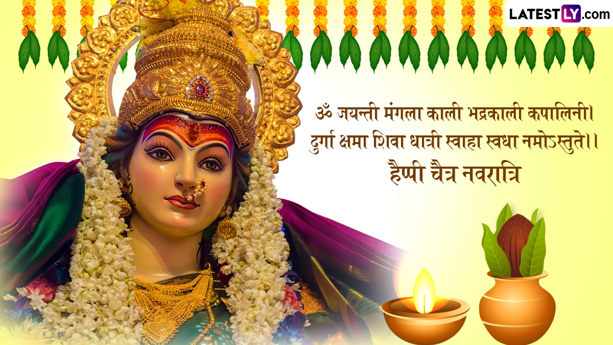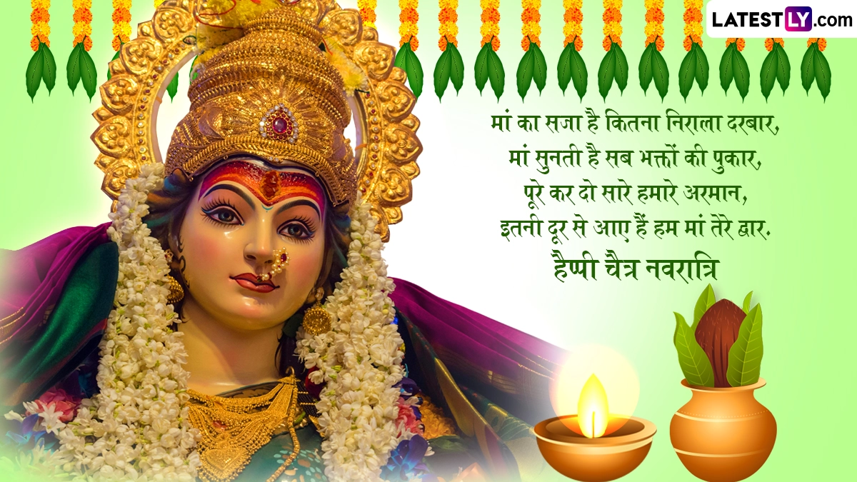 चैत्र नवरात्रि की प्रतिपदा पर घटस्थापना के बाद क्रमशः मां शैलपुत्री, ब्रह्मचारिणी, चंद्रघंटा, कूष्मांडा, स्कंदमाता, कात्यायनी, कालरात्रि, महागौरी और सिद्धिदात्री की पूजा की जाती है. प्रत्येक दिन माता के एक विशिष्ट स्वरूप को समर्पित है. इस पावन अवसर पर आप इन भक्तिमय हिंदी मैसेजेस, कोट्स, वॉट्सऐप विशेज, जीआईएफ ग्रीटिंग्स, एचडी इमेजेस के जरिए प्रियजनों को हैप्पी चैत्र नवरात्रि कह सकते हैं.