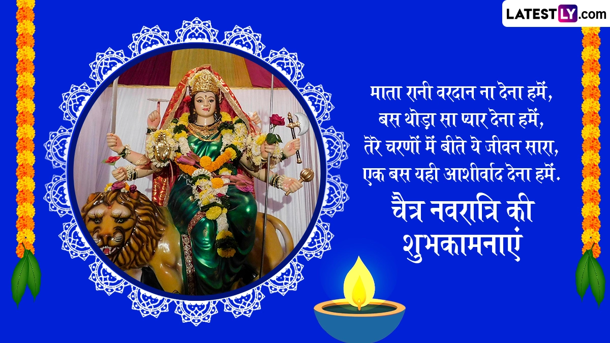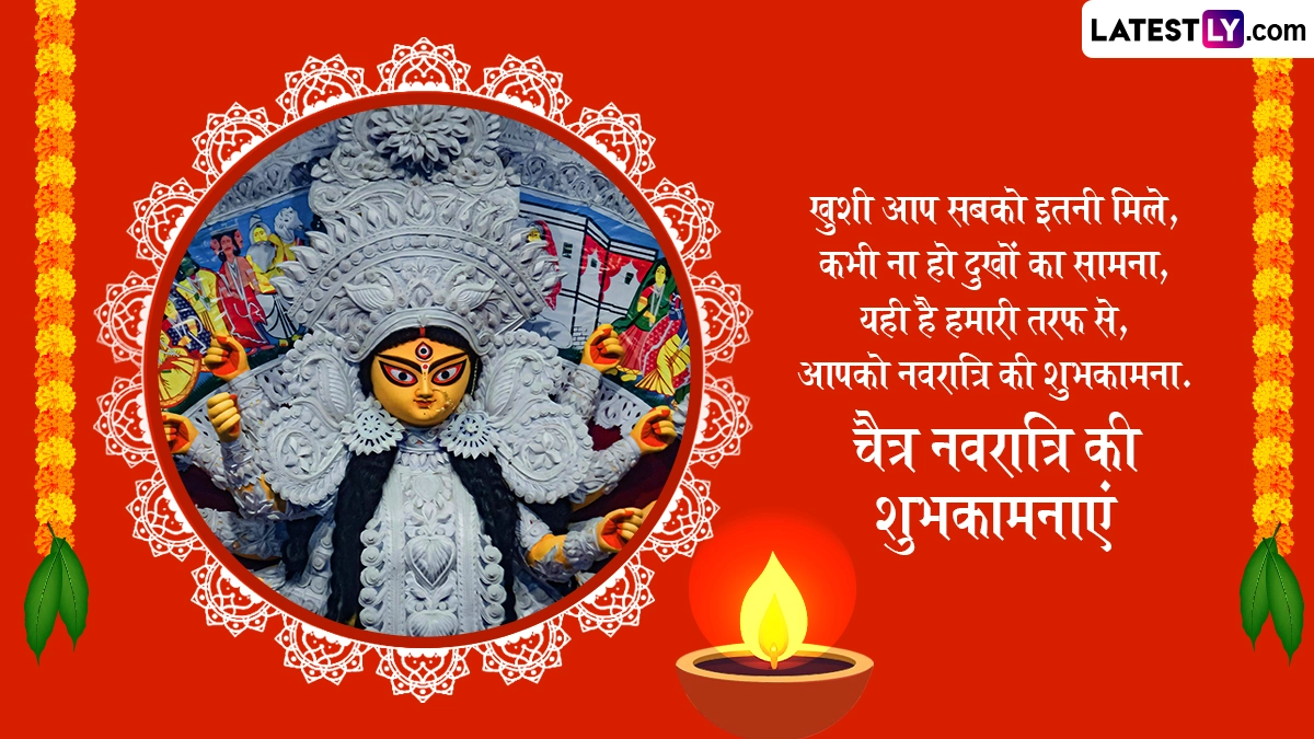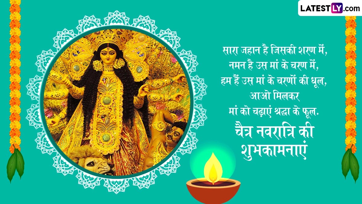 मां दुर्गा की उपासना के पर्व नवरात्रि को हिंदू धर्म में बहुत ही श्रद्धा और विश्वास के साथ मनाया जाता है. चैत्र प्रतिपदा के दिन शुभ मुहूर्त में कलश स्थापना करके देवी दुर्गा का आह्वान करते हैं, साथ ही शुभकामना संदेशों का आदान-प्रदान किया जाता है. इस खास अवसर पर आप इन शानदार हिंदी विशेज, वॉट्सऐप मैसेजेस, फेसबुक ग्रीटिंग्स, कोट्स के जरिए अपनों को चैत्र नवरात्रि की शुभकामनाएं दे सकते हैं.