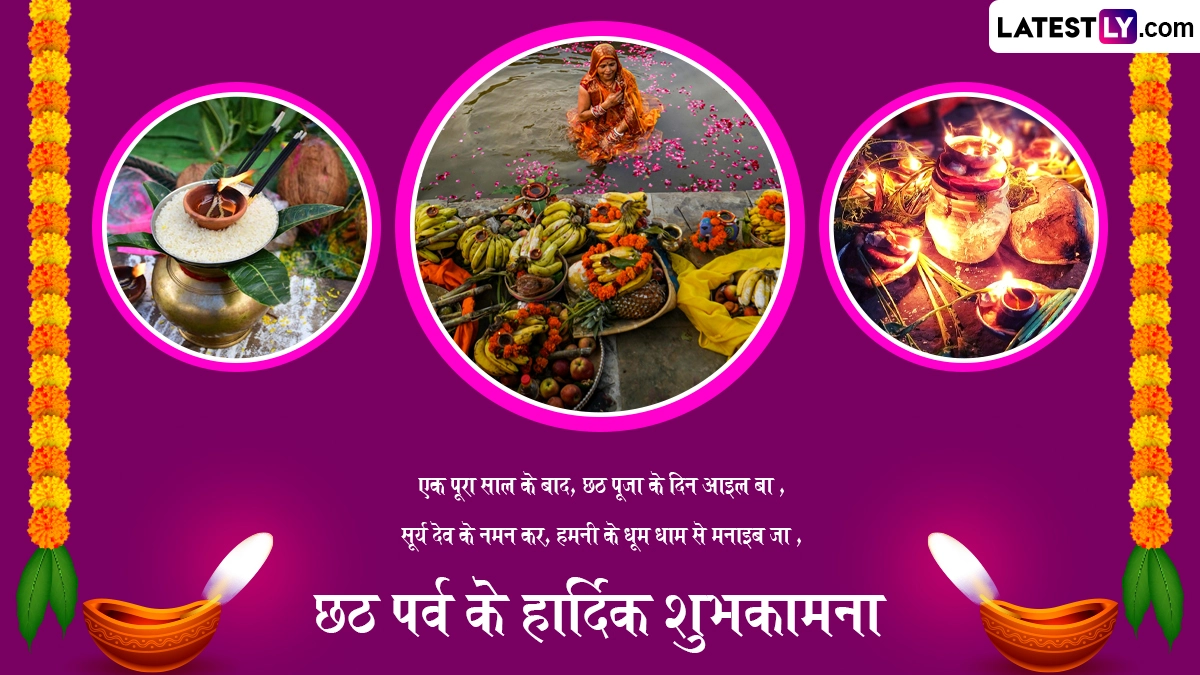 ऐसी मान्यता है कि भगवान सूर्य देव और छठ मैया की उपासना के इस पर्व को संतान की लंबी उम्र, उत्तम स्वास्थ्य और उनके उज्जवल भविष्य की कामना से किया जाता है. इसे सबसे कठिन व्रत माना जाता है, जो करीब 36 घंटे तक चलता है. इस अवसर पर लोग भोजपुरी शुभकामना संदेशों का आदान-प्रदान करते हैं. ऐसे में आप भी इन शानदार भोजपुरी मैसेजेस, कोट्स, वॉट्सऐप विशेज, जीआईएफ ग्रीटिंग्स को प्रियजनों संग शेयर कर सकते हैं.