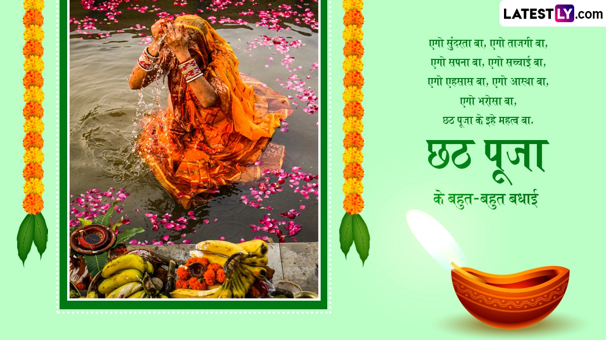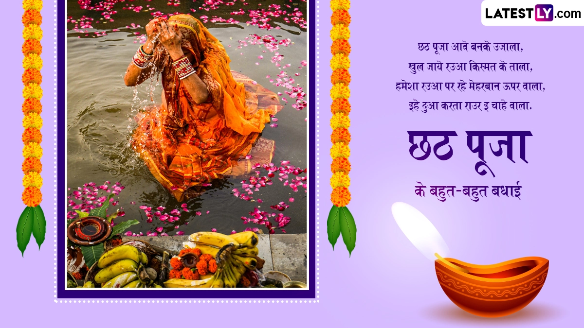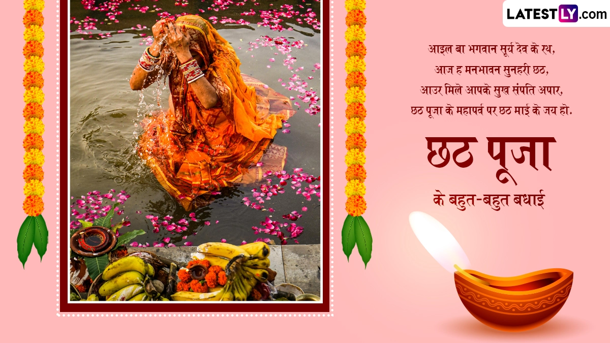 छठ पूजा व्रत को संतान के सुखी जीवन की कामना के लिए किया जाता है. आस्था के इस महापर्व को बिहार, पूर्वी उत्तर प्रदेश, छत्तीसगढ़, झारखंड और नेपाल के तराई वाले क्षेत्रों में मनाया जाता है. छठ पूजा के तीसरे दिन डूबते हुए सूर्य को अर्घ्य देकर व्रती अपनी संतान और घर-परिवार की खुशहाली की कामना करते हैं. इस अवसर पर आप इन शानदार विशेज, शायरी, वॉट्सऐप मैसेजेस, फेसबुक ग्रीटिंग्स को भेजकर भोजपुरी में छठ पूजा की बधाई दे सकते हैं.