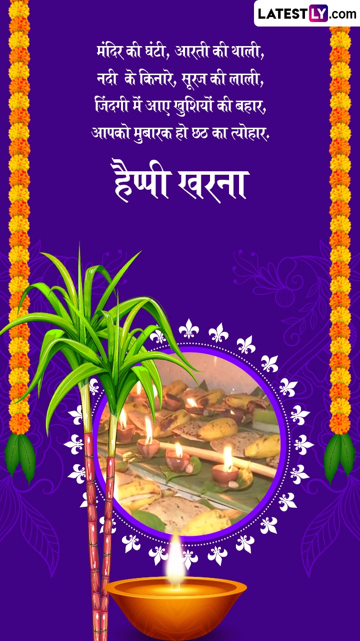 इस साल 26 अक्टूबर 2025 को छठ पूजा खरना (Kharna) यानी लोहंडा (Lohanda) का पर्व मनाया जा रहा है. कार्तिक मास के शुक्ल पक्ष की पंचमी तिथि को खरना होता है और इस दिन खरना का प्रसाद बनाया जाता है. इस दिन निर्जल व्रत रखकर रात में गुड़ और चावल की खीर खाई जाती है, लोगों को इसकी बधाई दी जाती है. ऐसे में आप भी इस खास अवसर पर इन हिंदी मैसेजेस, कोट्स, वॉट्सऐप विशेज, जीआईएफ ग्रीटिंग्स के जरिए प्रियजनों से हैप्पी छठ पूजा खरना कहकर बधाई दे सकते हैं.