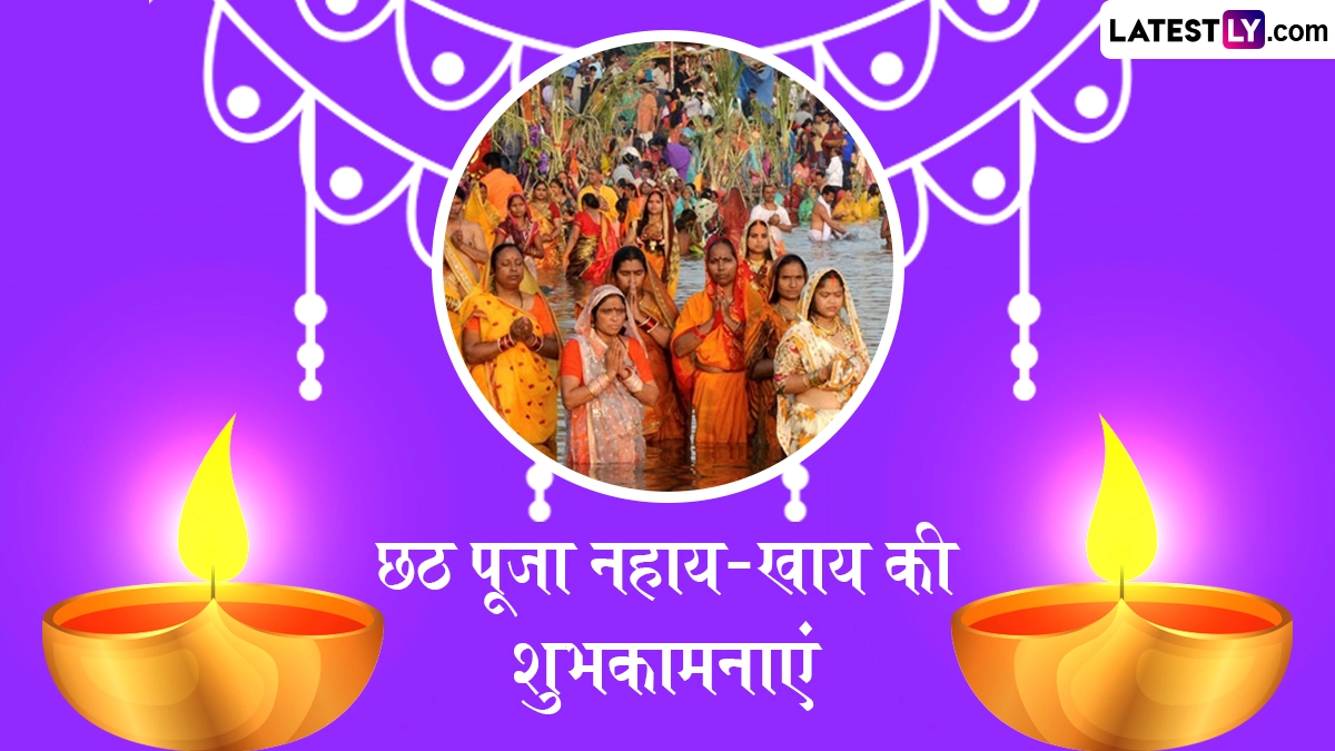 Chhath Puja 2025 Nahay Khay Wishes in Hindi: पांच दिवसीय दिवाली उत्सव (Diwali) के बाद लोग आस्था के महापर्व छठ पूजा (Chhath Puja) की तैयारियों में जुट जाते हैं. छठ पूजा हिंदू धर्म का अत्यंत पवित्र और लोकप्रिय त्योहार है, जिसे सूर्य देव और छठी मैया के प्रति कृतज्ञता और आभार व्यक्त करने के लिए मनाया जाता है. चार दिनों तक चलने वाला यह पर्व स्वास्थ्य, समृद्धि, सुख-शांति और जीवन की सभी आवश्यकताओं के लिए आशीर्वाद प्राप्त करने का एक खास अवसर होता है. हिंदू पंचांग के अनुसार, चार दिनों तक चलने वाले छठ पूजा महापर्व की शुरुआत हर साल कार्तिक मास के शुक्ल पक्ष की चतुर्थी तिथि से होती है और समापन कार्तिक शुक्ल पक्ष की सप्तमी तिथि को होता है. इस साल 25 अक्टूबर 2025 को नहाय-खाय (Nahay Khay) के साथ छठ पूजा की शुरुआत हो रही है और 28 अक्टूबर 2025 को ऊषा अर्घ्य के बाद इस पर्व का समापन होगा. इस कठिन व्रत को महिलाएं घर की खुशहाली और संतान की सलामती के लिए रखती हैं. इसे छठ पूजा, डाला छठ, छठी माई, छठ, छठ माई पूजा, सूर्य षष्ठी जैसे विभिन्न नामों से जाना जाता है.