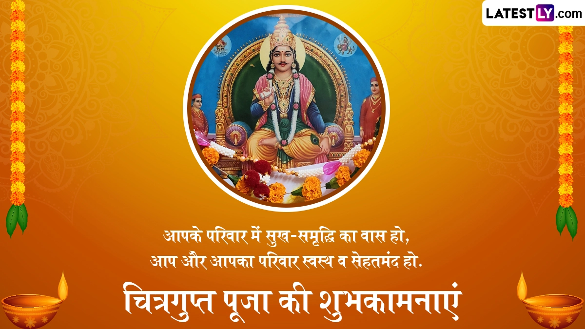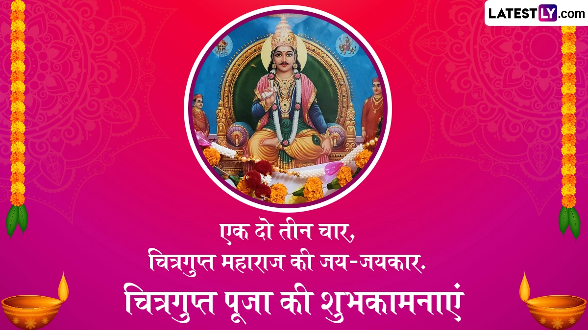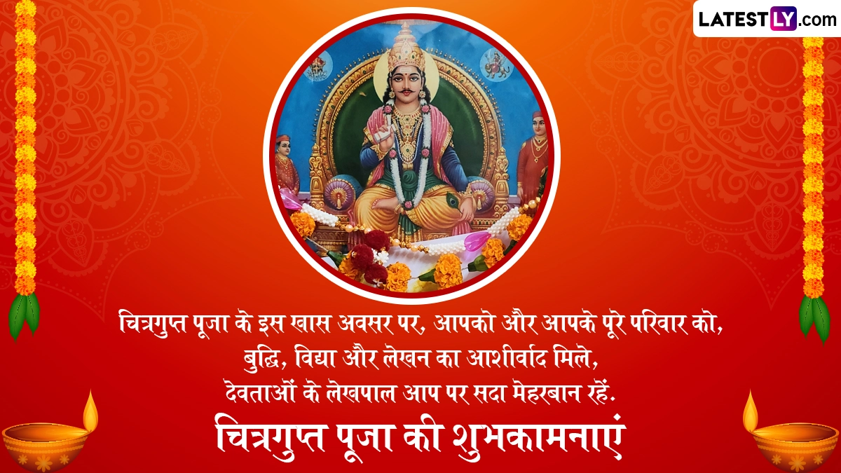Chitragupta Puja 2025 Messages in Hindi: हिंदू पंचांग के अनुसार, चित्रगुप्त पूजा का पर्व हर साल कार्तिक मास के शुक्ल पक्ष की द्वितीया तिथि को मनाया जाता है. दरअसल, पांच दिवसीय दिवाली उत्सव (Diwali Festival) का समापन भाई दूज (Bhai Dooj) वाले दिन होता है और इसी दिन यम द्वितीया (Yama Dwitiya) और चित्रगुप्त पूजा (Chitragupta Puja) का त्योहार भी मनाया जाता है. इस साल 23 अक्टूबर 2025 को चित्रगुप्त पूजा का पर्व मनाया जा रहा है. हिंदू धर्म की प्रचलित मान्यताओं के अनुसार, चित्रगुप्त जी (Bhagwan Chitragupta) सभी प्राणियों के कर्मों का लेखा-जोखा रखने का कार्य करते हैं, इसलिए उनका मुख्य कार्य लेखनी से जोड़कर देखा जाता है. यही वजह है कि इस दिन चित्रगुप्त जी के प्रतिरूप के तौर पर कलम या लेखनी का पूजन किया जाता है. मान्यता है कि उनके पूजन से बुद्धि, वाणी और लेखनी का आशीर्वाद प्राप्त होता है.