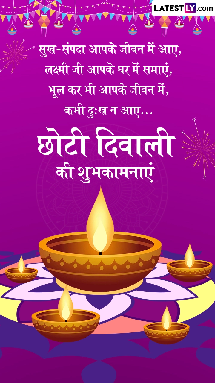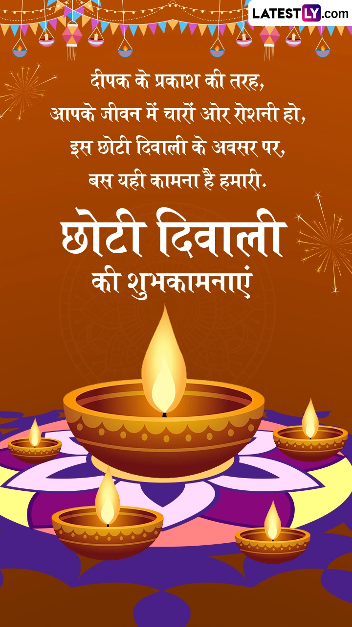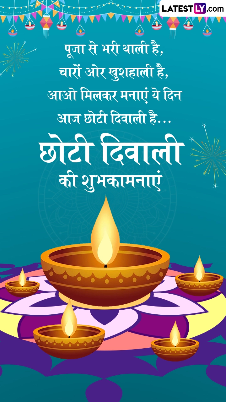 Choti Diwali 2025 Messages: छोटी दिवाली पर प्रियजनों संग शेयर करें ये शानदार हिंदी GIF Greetings और Quotes