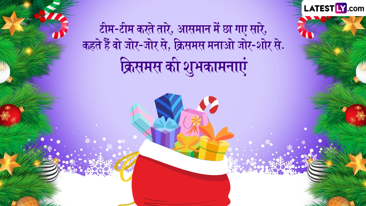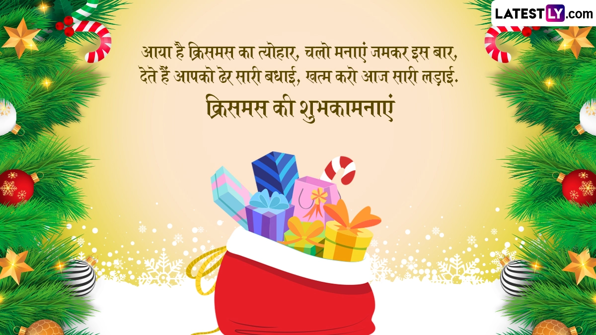 क्रिसमस ईसाई धर्म का सबसे बड़ा और महत्वपूर्ण पर्व है, जिसका जश्न मनाने से एक दिन पहले यानी क्रिसमस ईव पर केरोल्स गाए जाते हैं, गिरिजाघरों में खास प्रार्थनाएं की जाती हैं और लोग एक-दूसरे का मुंह मीठा कराकर इस पर्व की बधाई देते हैं. ऐसे में इस खास अवसर पर आप भी इन शानदार हिंदी मैसेजेस, कोट्स, वॉट्सऐप विशेज, फेसबुक ग्रीटिंग्स, फोटो एसएमएस के जरिए प्रियजनों को क्रिसमस की शुभकामनाएं दे सकते हैं.
