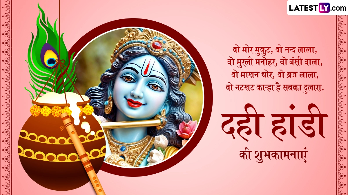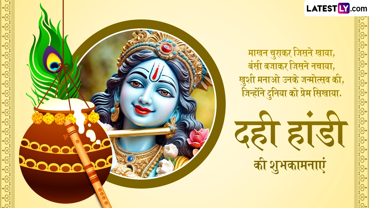 Dahi Handi 2024 Wishes: श्री कृष्ण जन्माष्टमी (Krishna Janmashtami), भारत के उत्तरी और पश्चिमी भागों में मनाए जाने वाले सबसे 'मजेदार' त्यौहारों में से एक है, जो भगवान कृष्ण, उनके जन्म और दही के प्रति उनके प्रेम का सम्मान करने के लिए समर्पित है. जन्माष्टमी प्रेम, आनंद, भक्ति और उत्साह से भरी होती है क्योंकि यह बाल कृष्ण के जन्म का प्रतीक है, वह बालक जिसने अपने लोगों के लिए चमत्कार किए और जन्माष्टमी का सबसे मजेदार हिस्सा दही हांडी है. यह जीवंत, ऊर्जावान, मजेदार और बहुत ही रोमांचकारी होता है. जन्माष्टमी, जिसे कृष्ण जन्माष्टमी (Krishna Janmashtami) या गोकुलाष्टमी (Gokulashtami) के नाम से भी जाना जाता है, वह दिन है जब भगवान विष्णु के आठवें अवतार श्री कृष्ण का जन्म हुआ था. यह भी पढ़ें: Shri Krishna Quotes From Bhagavad Gita: ‘जीवन से बड़ा कोई विद्यालय नहीं, कठिनाइयों से बड़ी कोई परीक्षा नहीं!’ जन्माष्टमी पर ऐसे कोट्स भेजकर पर्व करें सेलिब्रेट