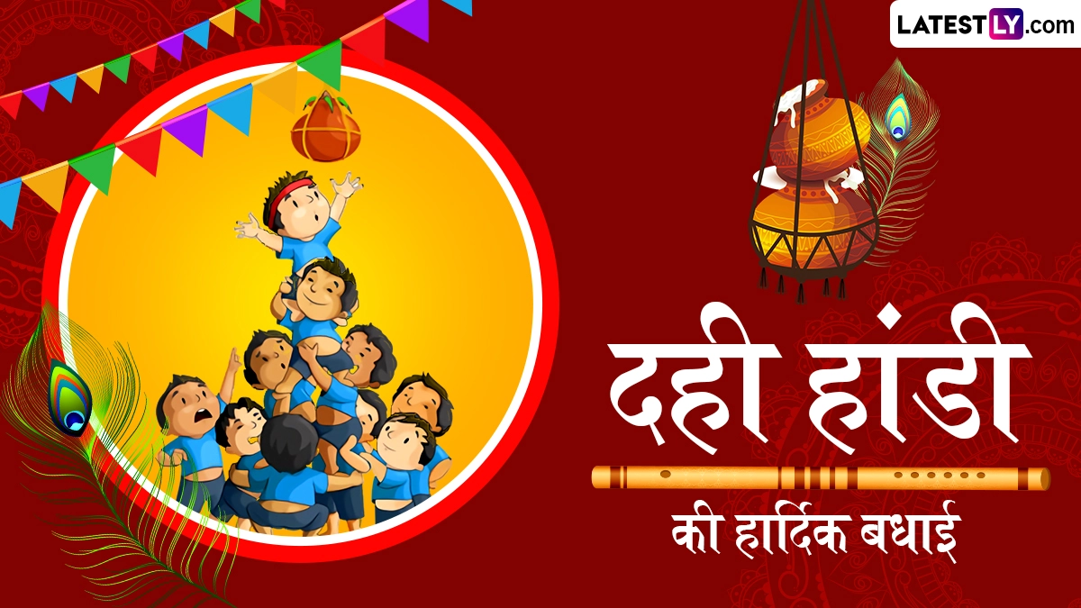 Dahi Handi 2025 Greetings in Hindi: भगवान विष्णु (Bhagwan Vishnu) ने द्वापर युग में भाद्रपद मास के कृष्ण पक्ष की अष्टमी तिथि को आठवां अवतार लिया था. मथुरा के कारागार में श्रीहरि ने माता देवकी और वासुदेव की आठवीं संतान श्रीकृष्ण (Shri Krishna) के रूप में जन्म लिया था, इसलिए इस तिथि पर जन्माष्टमी (Janmashtami) के पर्व को हर्षोल्लास के साथ मनाया जाता है. कहा जाता है कि भगवान श्रीकृष्ण को दही और माखन अत्यंत प्रिय है, इसलिए अपने बाल्यकाल में वो अपने दोस्तों के साथ मिलकर गोपियों और आस-पड़ोस के घरों में जाकर माखन चुराते थे. माखन चोर श्रीकृष्ण से अपने माखन को बचाने के लिए गोपियों ने मटकी को ऊंचाई पर लटकाना शुरु कर दिया, लेकिन कान्हा अपने दोस्तों के साथ मिलकर मानव पिरामिड बनाकर माखन चुराकर खाने लगते थे. उनकी इन्ही बाल लीलाओं का जश्न मनाने के लिए इस साल 16 अगस्त 2025 को दही हांडी का त्योहार मनाया जा रहा है.
