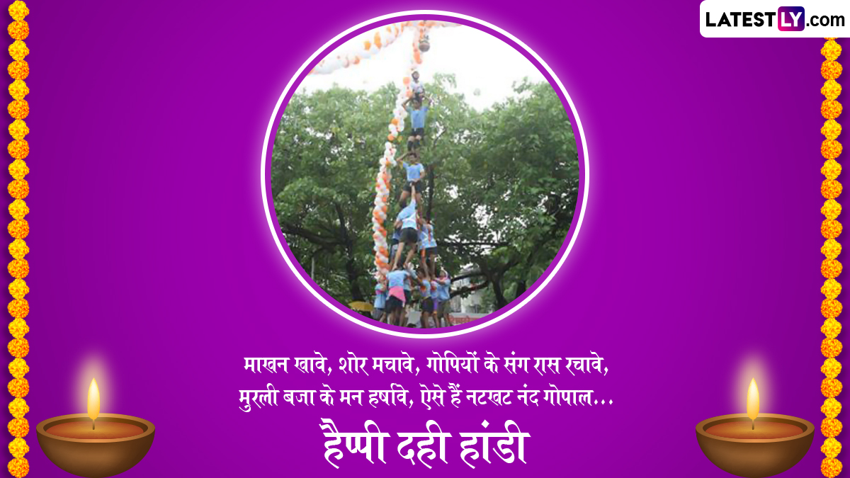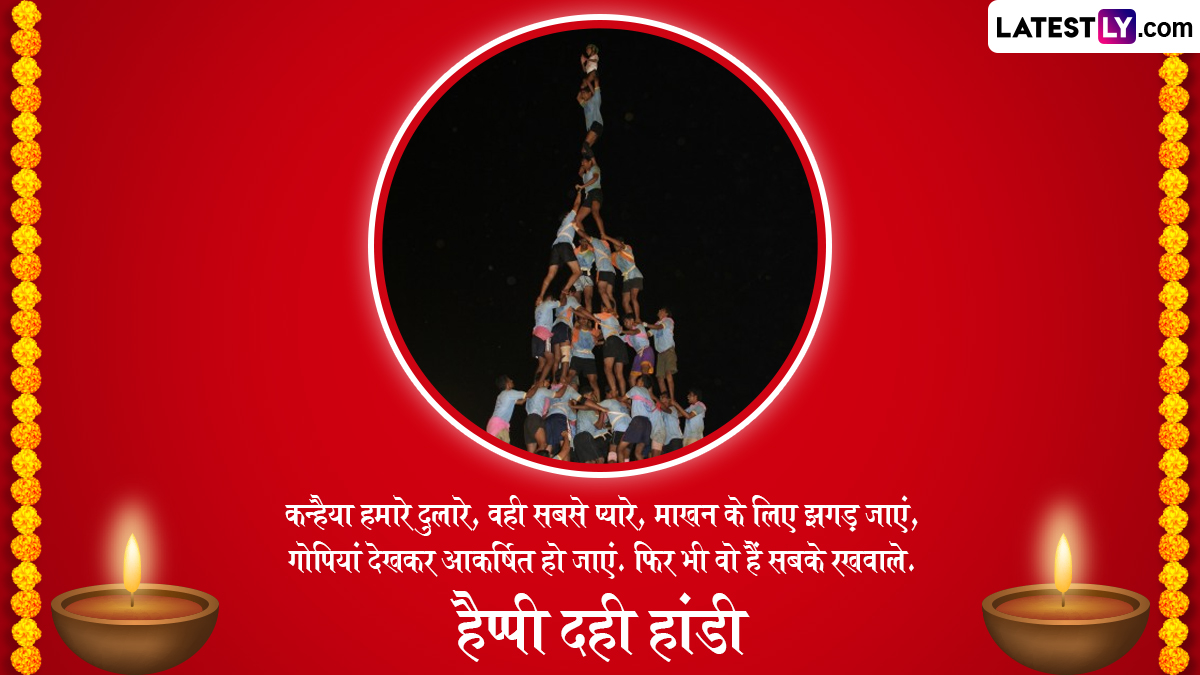 Dahi Handi 2025 Messages in Hindi: एक तरफ जहां भगवान विष्णु (Bhagwan Vishnu) के आठवें अवतार श्रीकृष्ण के जन्मोत्सव को कृष्ण जन्माष्टमी (Krishna Janmashtami) के तौर पर देशभर में धूमधाम से मनाया जाता है तो वहीं दूसरी तरफ कान्हा की नटखट लीलाओं का जश्न मनाने के लिए दही हांडी (Dahi Handi) यानी गोपाल काला का पर्व पूरे जोश और उत्साह के साथ मनाया जाता है. दही हांडी के दिन गोविंदा पथक यानी युवाओं की टोली मानव पिरामिड बनाकर ऊंचाई पर लटकी हुई दही और माखन से भरी मटकी को फोड़ने की कोशिश करती है. महाराष्ट्र के शहरों जैसे मुंबई, पुणे और ठाणे में बड़े पैमानें पर दही हांडी प्रतियोगिताओं का आयोजन किया जाता है. इस प्रतियोगिता में जीतने वाले समूह को नकद पुरस्कार, ट्रॉफी और सम्मान दिया जाता है. आयोजन के दौरान दही हांडी से जुड़े बॉलीवुड के हिट गाने बजाए जाते हैं. इस साल 16 अगस्त 2025 को श्रीकृष्ण की बाल लीलाओं के पर्व दही हांडी को मनाया जा रहा है.