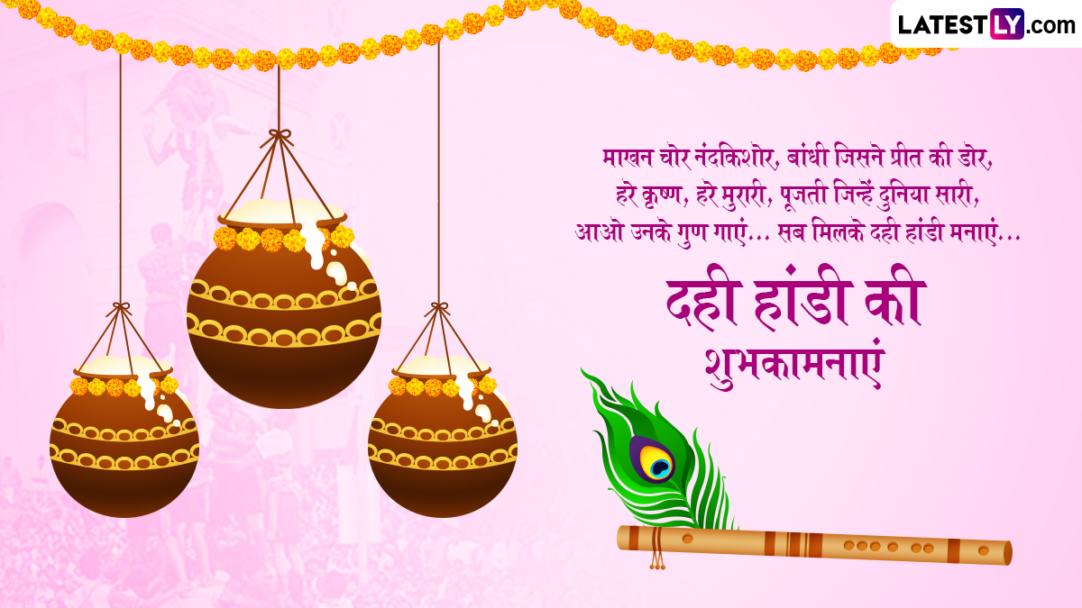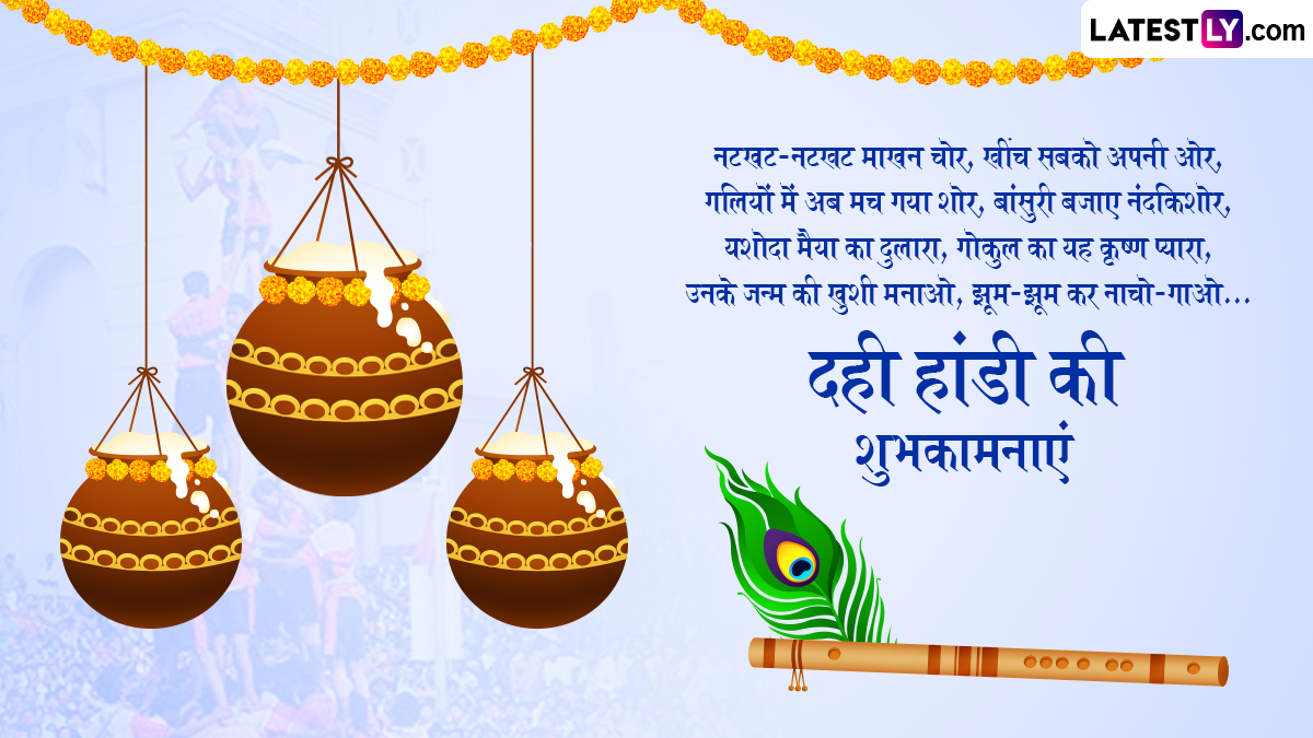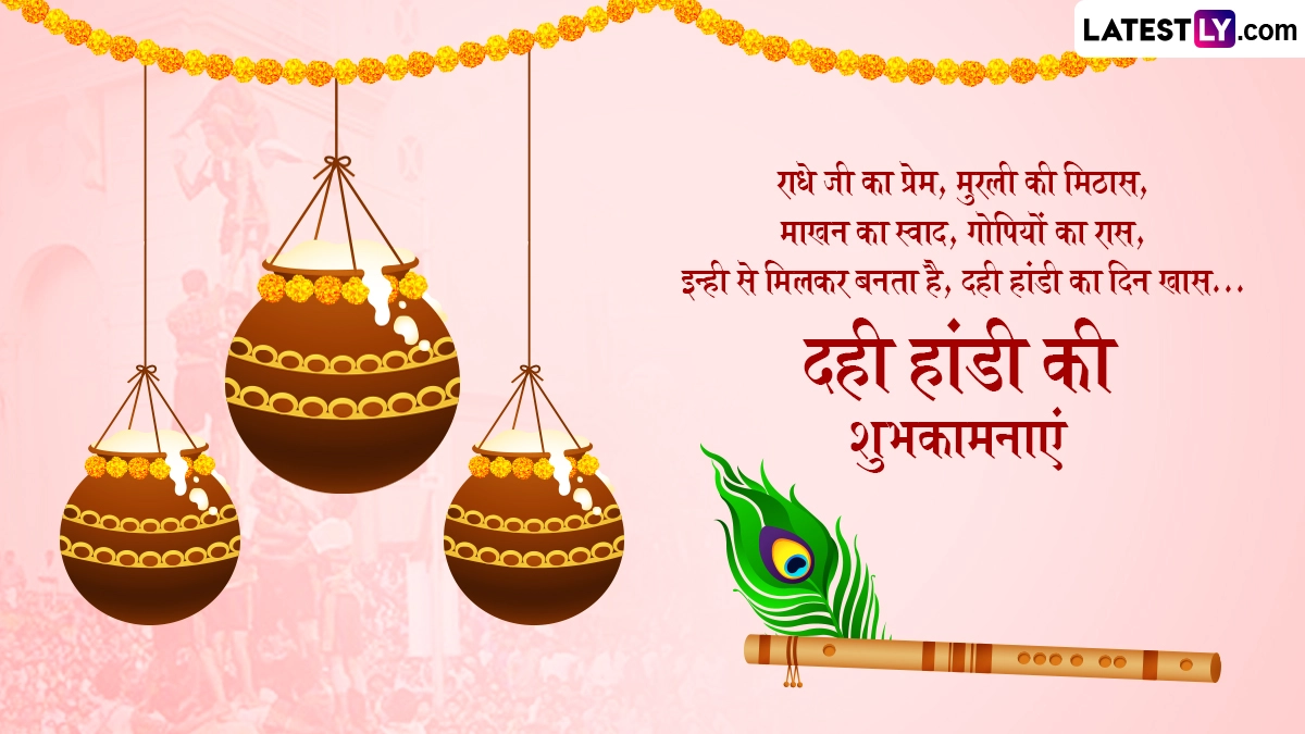 Dahi Handi 2025 Wishes in Hindi: ‘गोविंदा आला रे… आला…’ गोपाला काला यानी दही हांडी (Dahi Handi) का यह पर्व भगवान श्रीकृष्ण (Bhagwan Shri Krishna) की बाल लीलाओं का जश्न मनाता है. दही हांडी, श्रीकृष्ण जन्माष्टमी (Krishna Janmashtami) का एक महत्वपूर्ण और उत्साहपूर्ण हिस्सा है, जो विशेष रूप से महाराष्ट्र, गुजरात और भारत के कुछ अन्य हिस्सों में बड़े उत्साह के साथ मनाया जाता है. यह परंपरा भगवान श्रीकृष्ण की बाल लीलाओं, विशेष रूप से उनकी माखन चोरी की शरारतों से प्रेरित है. जब वे गोकुल में माखन और दही चुराने के लिए गोपियों के घरों में सेंध लगाते थे. गोपियां मटकियों को ऊंचाई पर लटकाकर माखन को बचाने की कोशिश करती थीं, लेकिन श्रीकृष्ण और उनके सखा पिरामिड बनाकर मटकियों तक पहुंच जाते थे. भगवान श्रीकृष्ण की चंचलता, भक्ति और समुदायिक एकता को दर्शाने वाले इस उत्सव को इस साल 16 अगस्त 2025 को मनाया जा रहा है.