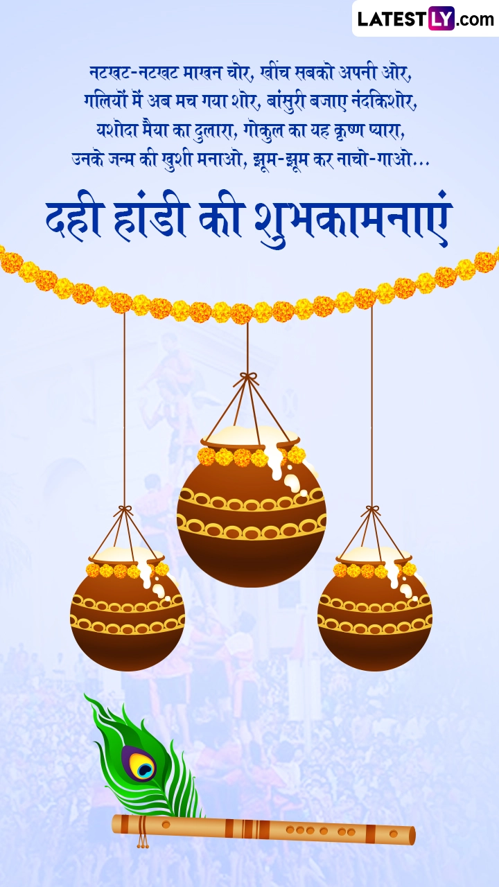 दही हांडी सामुदायिक एकता और सहयोग का प्रतीक है, क्योंकि गोविंदा पथक इस दिन मानव पिरामिड बनाकर मटकियां फोड़ते हैं. यह उत्सव युवाओं में जोश, साहस और समन्वय को बढ़ावा देता है. यह सामाजिक समरसता और उत्सव के माहौल को प्रोत्साहित करता है, जिसमें सभी वर्गों के लोग शामिल होते हैं. अवसर पर आप इन शानदार हिंदी विशेज, वॉट्सऐप मैसेजेस, कोट्स, फेसबुक ग्रीटिंग्स के जरिए दही हांडी की शुभकामनाएं दे सकते हैं.