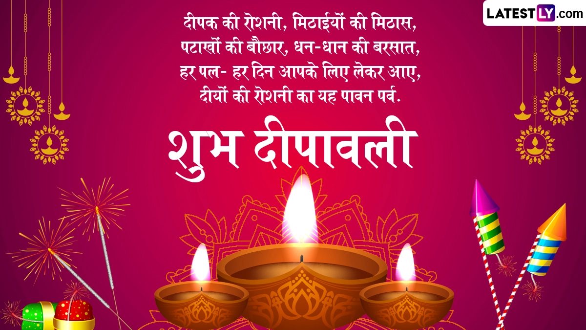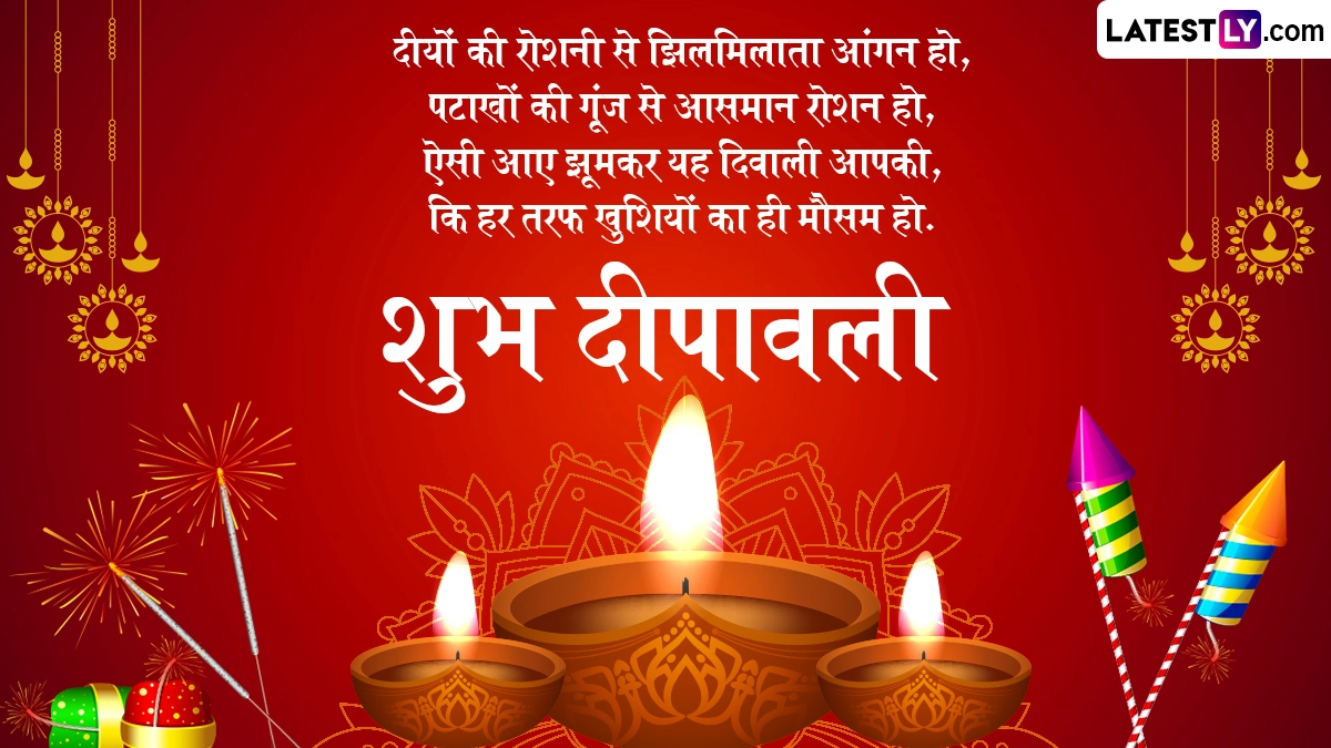 दीपावली का पर्व हिंदू धर्म में मनाए जाने वाले सबसे महत्वपूर्ण त्योहारों में से एक है, जिसका हर किसी को बेसब्री से इंतजार रहता है. यह पांच दिवसीय दिवाली उत्सव का तीसरा और सबसे मुख्य पर्व है, इसलिए लोग इसकी शुभकामनाएं भी देते हैं. ऐसे में इस खास अवसर पर आप भी इन हिंदी मैसेजेस, वॉट्सऐप विशेज, कोट्स, जीआईएफ ग्रीटिंग्स, एचडी इमेजेस को दोस्तों-रिश्तेदारों संग शेयर कर उन्हें शुभ दीपावली कह सकते हैं.