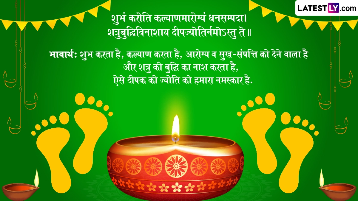 Deepawali 2024 Sanskrit Messages in Hindi: अंधकार पर प्रकाश की जीत के अनोखे पर्व दिवाली का हिंदू धर्म में विशेष महत्व बताया जाता है, जिसका हर किसी को बेसब्री से इंतजार रहता है. दीयों की जगमगाती रोशनी से अमावस्या की काली रात को रोशन करने वाला दीयों का यह उत्सव पूरे पांच दिनों तक मनाया जाता है. पांच दिनों तक मनाए जाने वाले इस त्योहार के दौरान धनतेरस (Dhanteras), नरक चतुर्दशी (Narak Chaturdashi), लक्ष्मी पूजन (Lakshmi Pujan), गोवर्धन पूजा (Govardhan Puja) और भाईदूज (Bhai Dooj) जैसे पर्व मनाए जाते हैं. इस साल दिवाली उत्सव की शुरुआत 29 अक्टूबर से धनतेरस के साथ हो रही है, जबकि इसका समापन 3 नवंबर को भाई दूज के साथ होगा. दिवाली का मुख्य पर्व दीपावली (Deepawali) यानी लक्ष्मी पूजन का त्योहार 31 अक्टूबर को है.