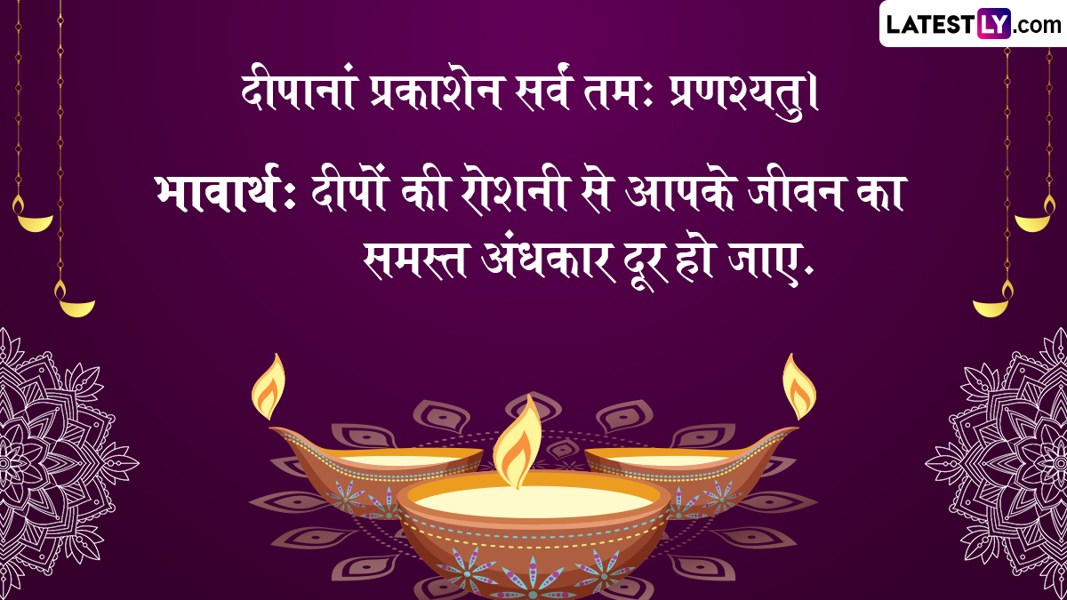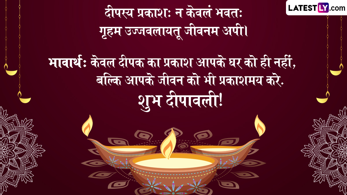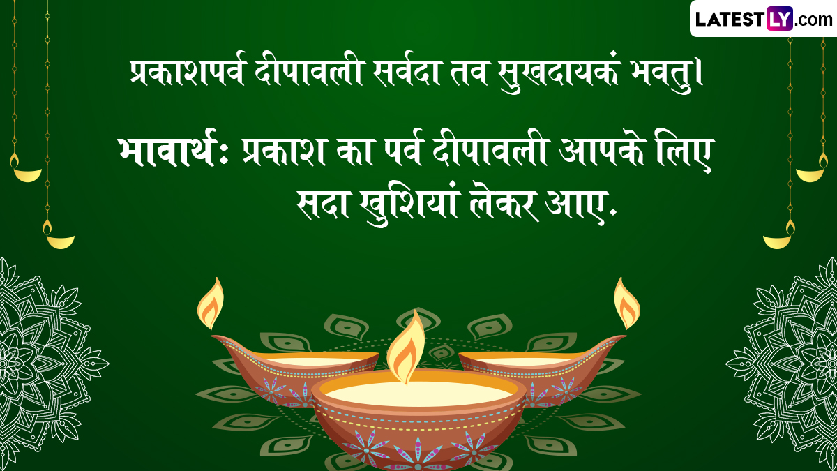 Deepawali 2024 Sanskrit Wishes: पांच दिवसीय दिवाली उत्सव (Diwali Utsav) का हर किसी को साल भर बेसब्री से इंतजार रहता है. जगमगाते दीयों के इस उत्सव के दौरान धनतेरस, छोटी दिवाली, लक्ष्मी पूजन, गोवर्धन पूजा और भाई दूज जैसे कई महत्वपूर्ण पर्व मनाए जाते हैं. दीपावली से जुड़ी प्रचलित पौराणिक मान्यताओं के अनुसार, दीपावली (Deepawali) के दिन मर्यादापुरुषोत्तम भगवान राम, माता सीता और लक्ष्मण 14 साल के वनवास के बाद अयोध्या नगरी में वापस लौटे थे, उनके स्वागत में पूरी अयोध्या (Ayodhya) नगरी को दीयों से रोशन किया गया था. कहा जाता है कि तब से दिवाली मनाने की परंपरा शुरु हुई है और यह सिलसिला अब तक बरकरार है. हिंदू पंचांग के मुताबिक, पांच दिवसीय दिवाली उत्सव की शुरुआत कार्तिक मास के कृष्ण पक्ष की त्रयोदशी से धनतेरस (Dhanteras) के साथ शुरु होती है और समापन कार्तिक मास के शुक्ल पक्ष की द्वितीया तिथि को भाई दूज (Bhai Dooj) के साथ होता है, जबकि दिवाली का मुख्य पर्व दीपावली यानी लक्ष्मी पूजन (Lakshmi Pujan) होता है, जो इस साल 31 अक्टूबर 2024 को है.