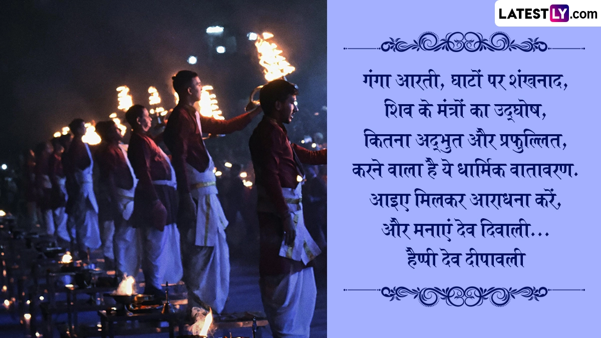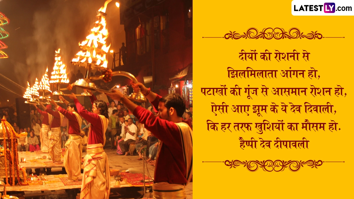 Dev Deepawali 2025 Messages: काशी में हर सेल देव दीपावली (Dev Deepawali) मनाई जाती है. देव दीपावली का मतलब देवताओं की दिवाली. देव दीपावली इस साल 5 नवंबर को मनाया जा रहा है. यह कार्तिक पूर्णिमा (Kartik Purnima) की रात मनाया जाता है. मान्यता है कि देवता स्वयं गंगा स्नान के लिए काशी के घाटों पर उतरते हैं. दिवाली के 15 दिन बाद यह त्यौहार मनाया जाता है. यह त्योहार नदी के तट को दीपों के सागर में बदल देता है, जहां 100 से अधिक घाटों, मंदिरों और नावों पर लाखों दीये जलाए जाते हैं, जिससे एक भव्य नजारा बनता है. शाम को गंगा आरती, जुलूस और सांस्कृतिक कार्यक्रमों का आयोजन होता है, जिसमें भक्तों, कलाकारों और पर्यटकों की भारी भीड़ उमड़ती है. का र्तिक पूर्णिमा को मनाई जाने वाली देव दिवाली, भगवान शिव की राक्षस त्रिपुरासुर पर विजय से जुड़ी हुई है, जिससे इसे 'त्रिपुरोत्सव' नाम मिला. यह भी पढ़ें: Guru Nanak Jayanti 2025 Messages: गुरु नानक जयंती पर ये हिंदी Quotes, GIF Greetings और WhatsApp Wishes भेजकर दें गुरु पर्व की बधाइयां