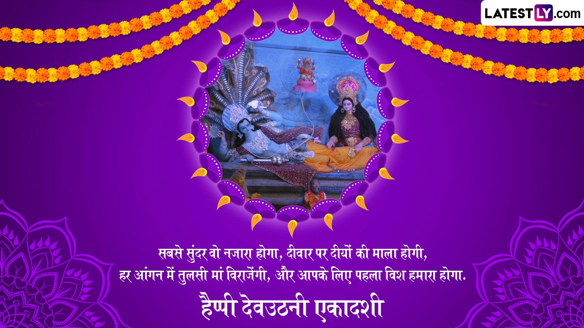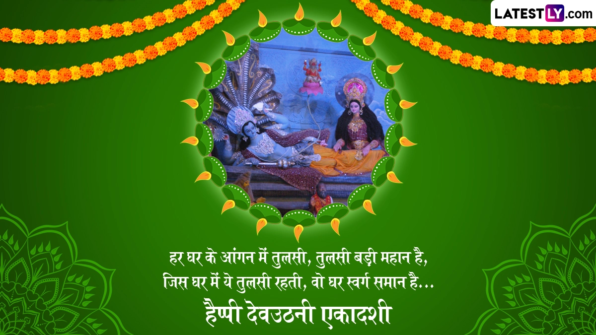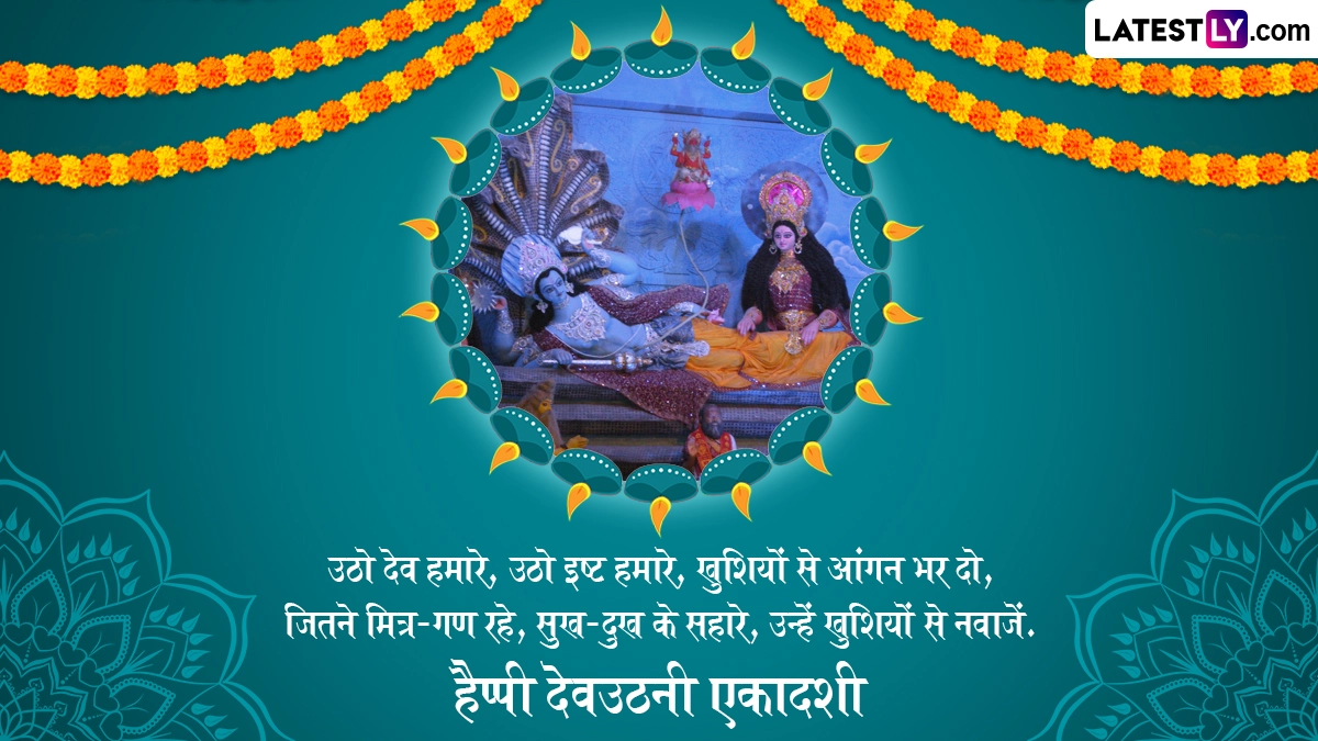 कहा जाता है कि देवउठनी एकादशी के दिन से भगवान विष्णु पाताल लोक छोड़कर फिर से वैकुंठ धाम आ जाते हैं, क्योंकि चतुर्मास के दौरान देवशयनी एकादशी से देवउठनी एकादशी तक श्रीहरि पाताल में वास करते हैं. इस एकादशी की लोग शुभकामनाएं देते हैं. ऐसे में आप भी इन हिंदी मैसेजेस, वॉट्सऐप विशेज, फेसबुक ग्रीटिंग्स और कोट्स को प्रियजनों संग शेयर कर उनसे हैप्पी देवउठनी एकादशी कह सकते हैं.